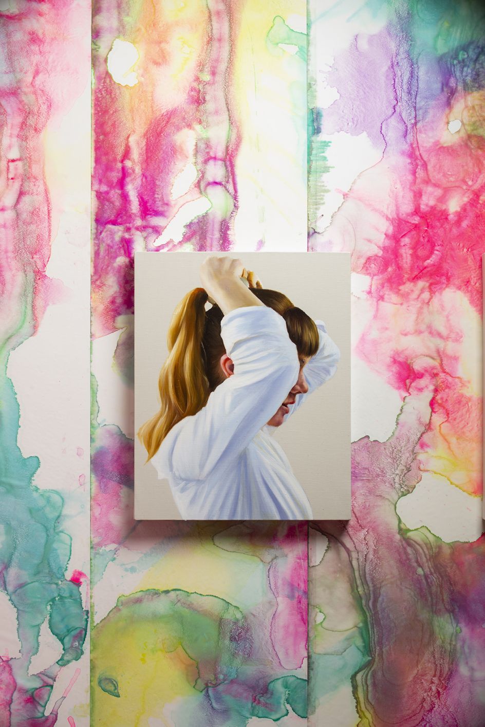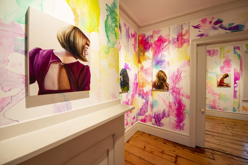 "In the paintings that come from this process, I’m hoping to draw out the lost threads of this particular history and connect it to contemporary concerns of agency, identity, access and power. In my site-specific, immersive installation Jo’s influence is blaring from the walls, seeping into the space, while the expressionless figures, lost forever in thought, meditate on what could have been for Jo and what could be for them."