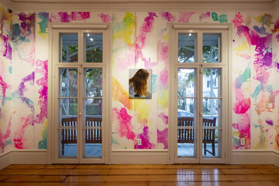 In a vibrant transformation of the main gallery space at the Edward Hopper House, Fraleigh’s wall coverings are inspired by Jo’s bold palette and vigorous, animated brushwork. They provide a fitting backdrop for paintings that reflect Jo Hopper’s often isolated persona within the context of her relationship with her reclusive husband.