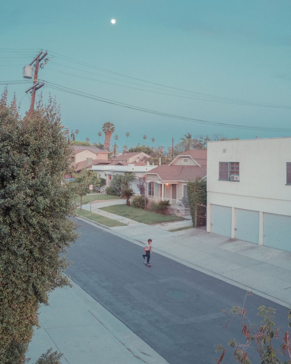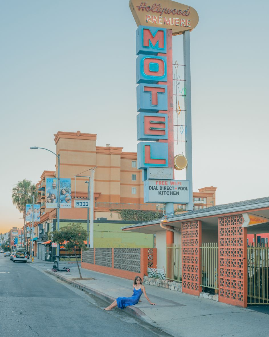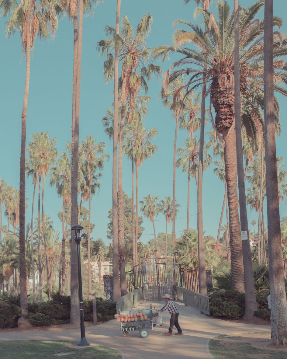 I love LA because you can experience different vibes in the same place. The sun, the palm trees, and the beach are all great, but you also have the mountains, the desert, the greedy part, the urban areas, the beautiful parks and the places where movies I love have been shot. All of these spaces are a fantastic playground to create work. It's not easy because there are fewer people in the street than in a city like London, NYC, or Barcelona, but this is what interests me. I can easily isolate a protagonist in my scene and play with the background to focus on the story which the photos give me.