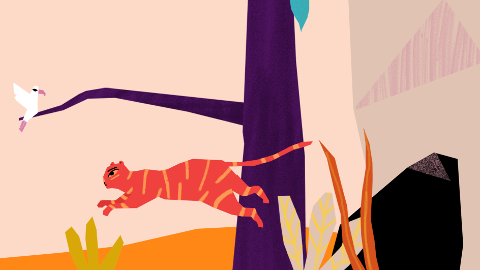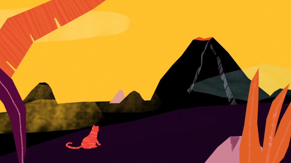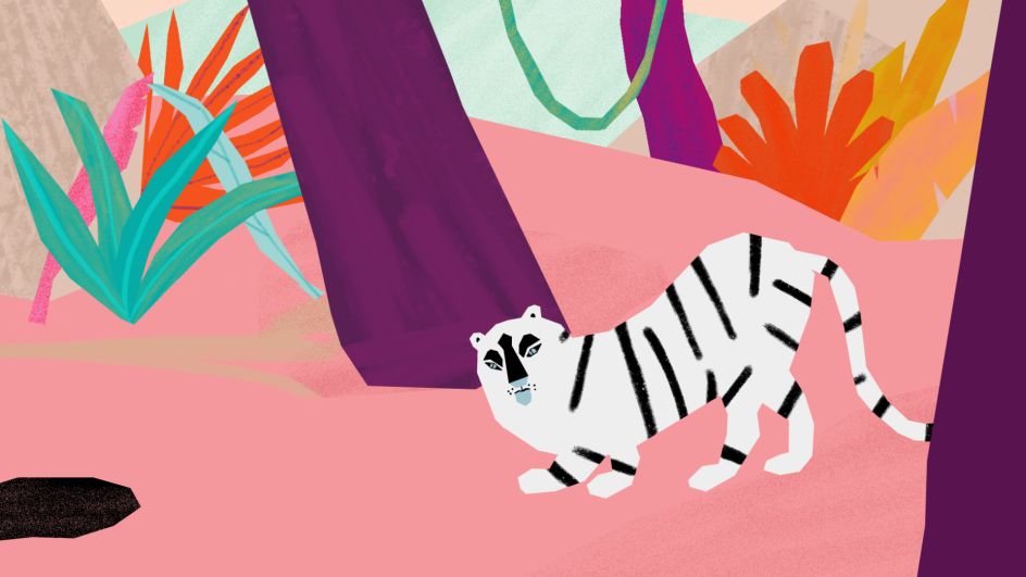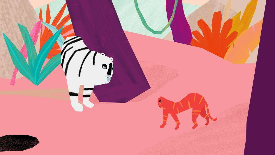 At first glance, Volcano Island seems like a beautifully illustrated tale about the natural world. Matisse-like cutouts of plants provide a backdrop for a cast of gorgeous, textural tigers; and the jungle landscape is brought to life with vivid colours and abstracted shapes.