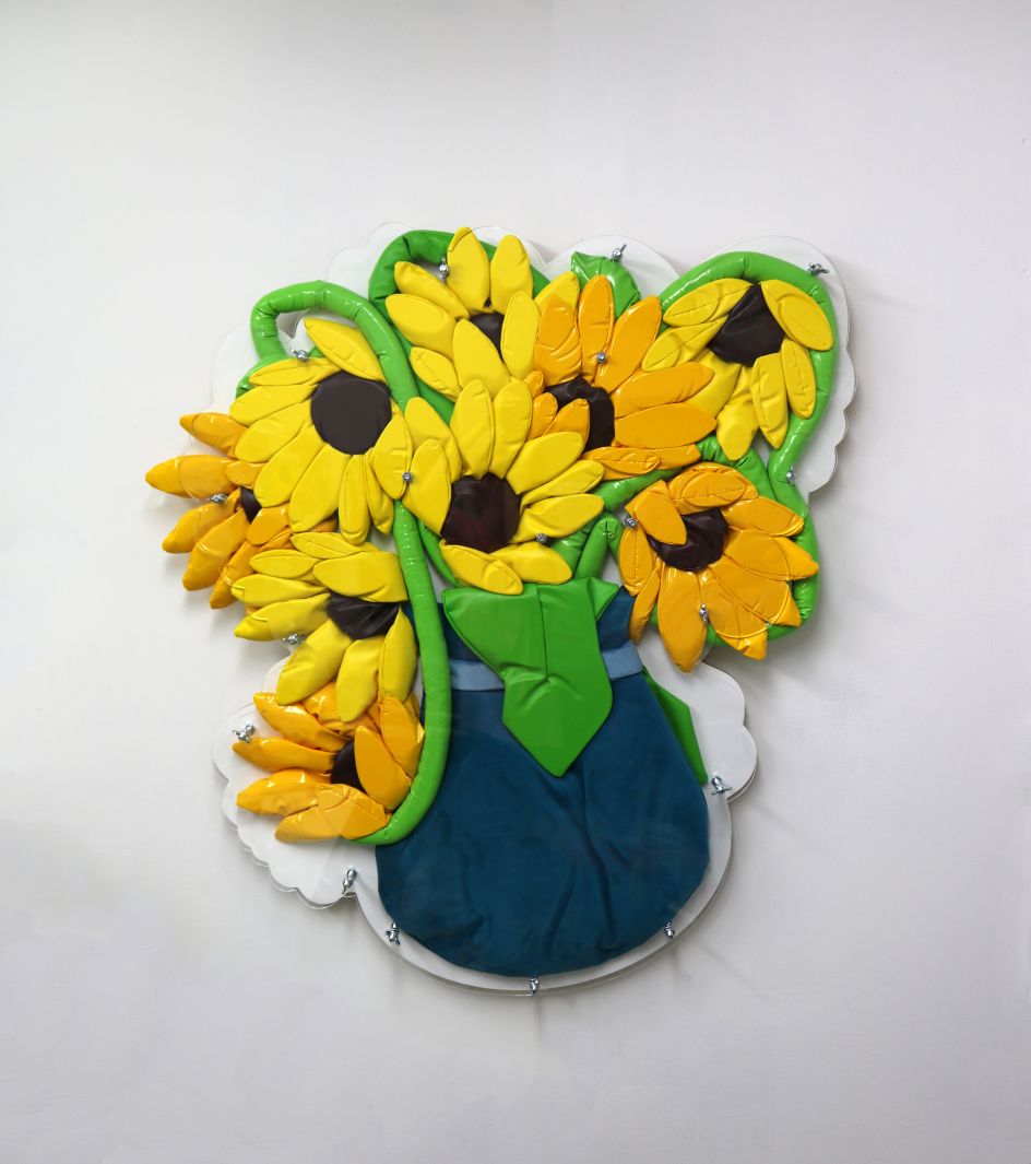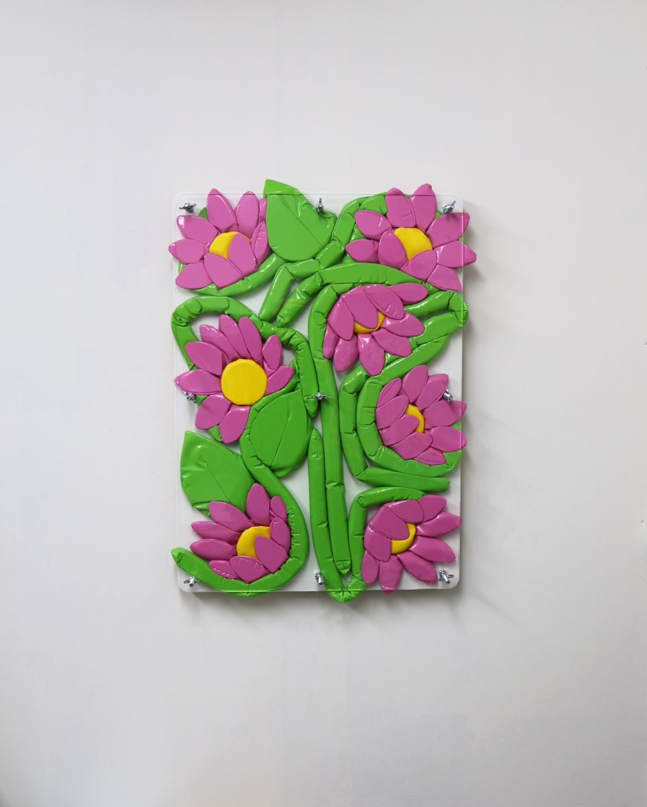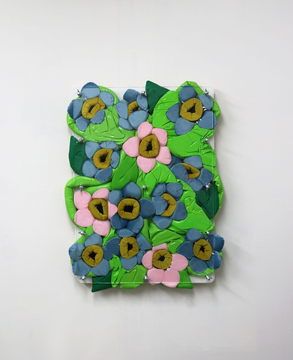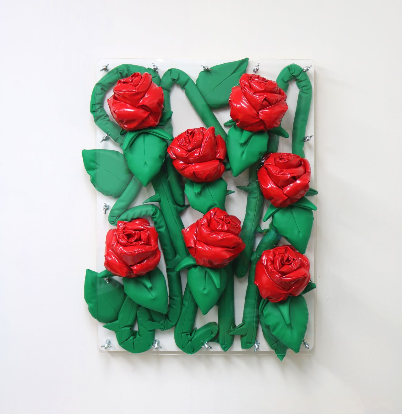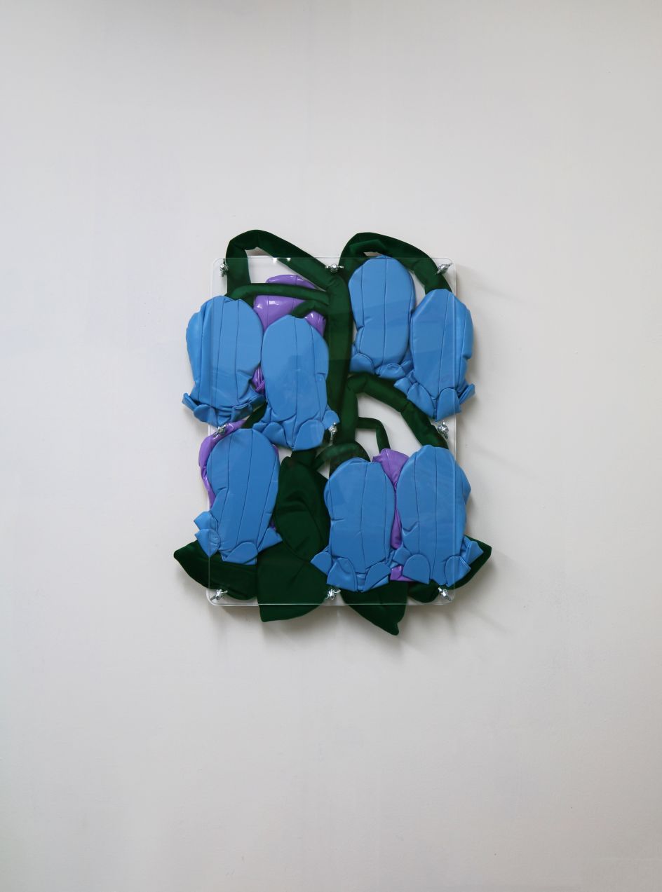Most works either merge velvet and PVC, a velvet counterpart or are made entirely from a high-shine Polyurethane (PU) fabric or velvet. Ant explains that by exploring materiality this way, he could play on the connotations of velvet as a luxury material and PU as a material associated with childhood through objects such as bouncy castles and inflatables.