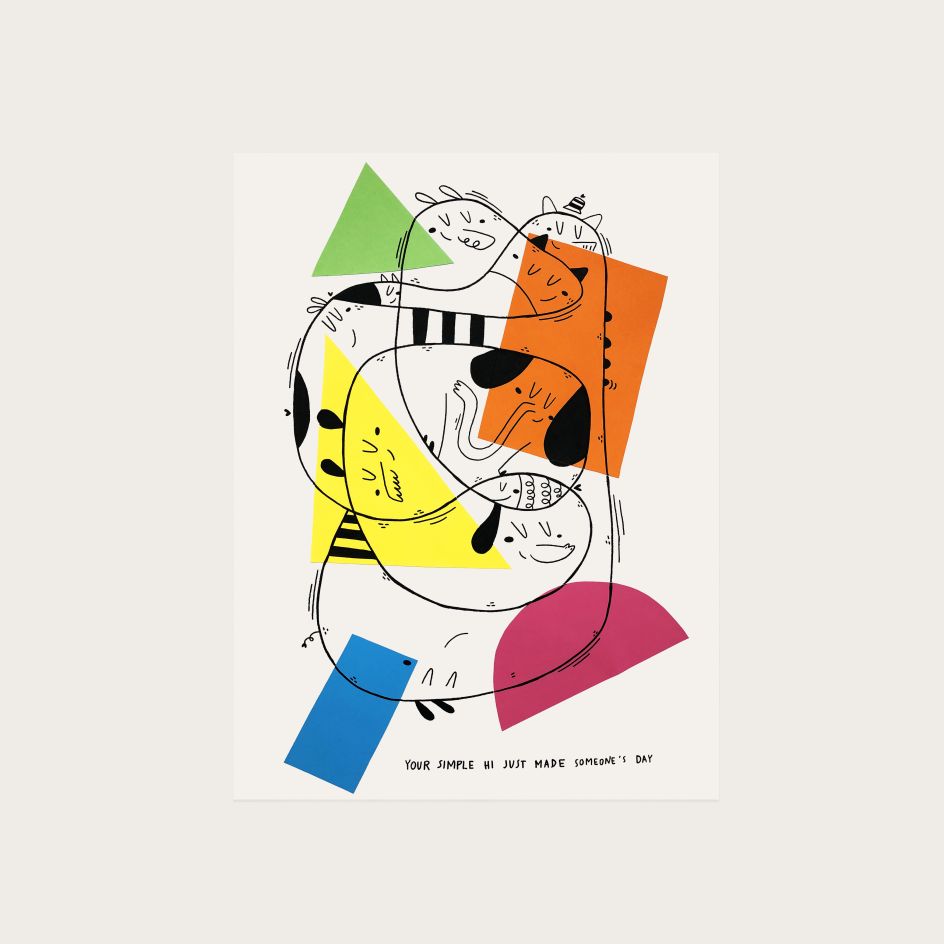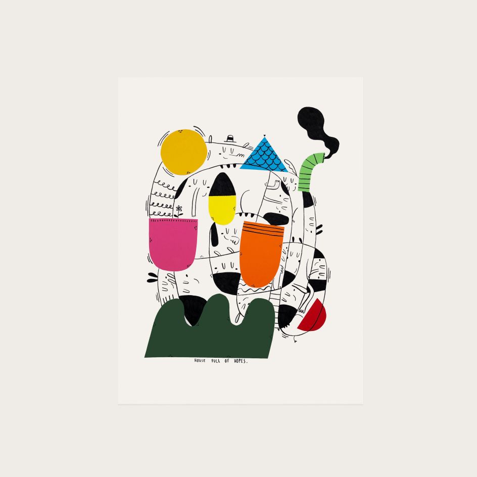 At the moment, he is exploring a one-line drawing technique, playing around with lines and white space. With a light and fresh colour palette and cute happy characters, Ari's work is just the lift we need. Discover more at Behance.