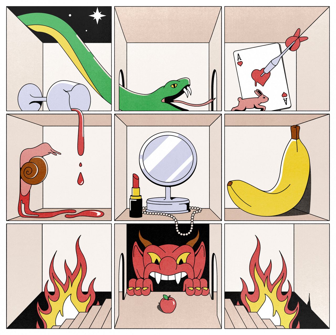 "Many of these early shorts were quite sinister and spooky while still being silly. I thought this juxtaposition worked well for such a novel song like Devil in Disguise. It was quite a sprint once the project was awarded. I ended up storyboarding, illustrating and animating the entire video in a little under two months. Fortunately, there was enough budget to hire some talented friends to help me animate," says Jimmy.