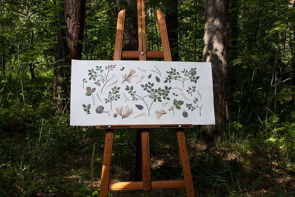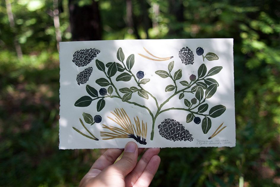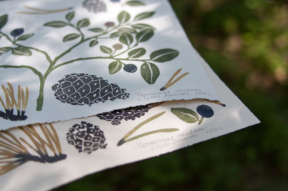 "In the rain pine cones are closed, and when the weather is dry—they are open. For me, it's miracle to see this, notice this, observe. I would like to grab, save and share this miracle with all. And my project is exactly about this sentiment: I try to preserve my favourite things in the forest with the help of hand-printing technique linocuts and my photo camera."