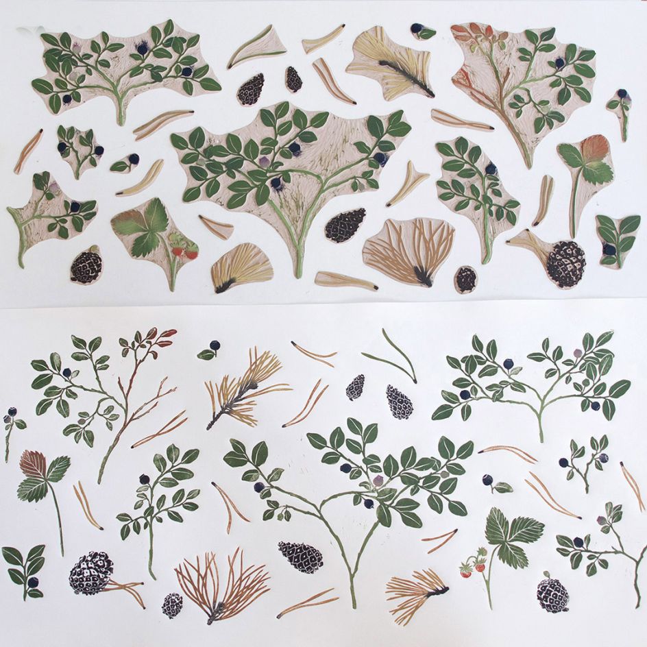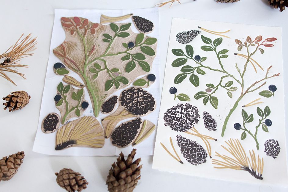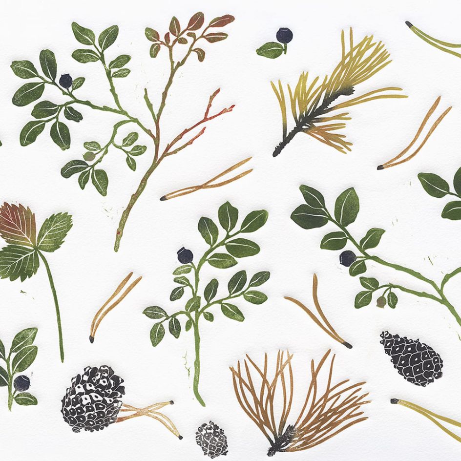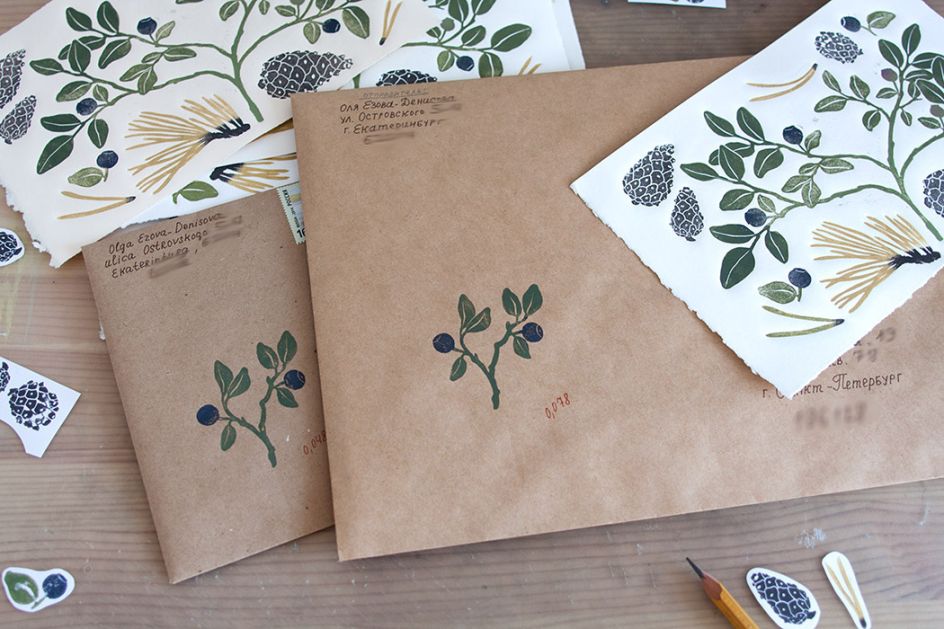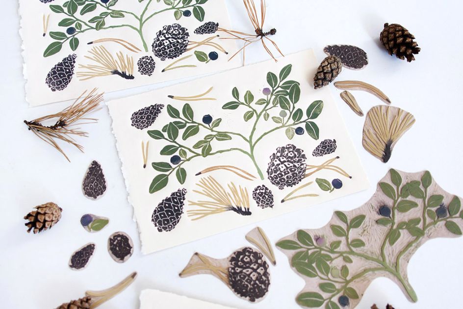 In her series Favourite Things in the Forest, Russian artist and illustrator Olga Ezova-Denisova aims to preserve the things she discovers on her nature walks by transforming them into clever linocut stamps. Everything from delicate branches and leaves to pine cones and blueberries, her intricate little stamps can be used to make the most beautiful prints.