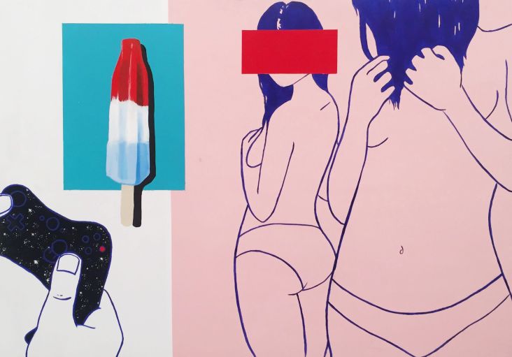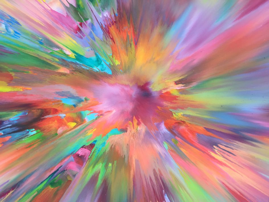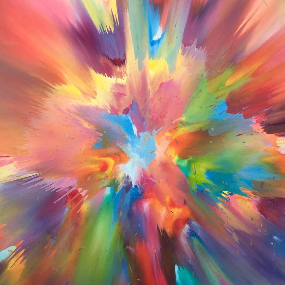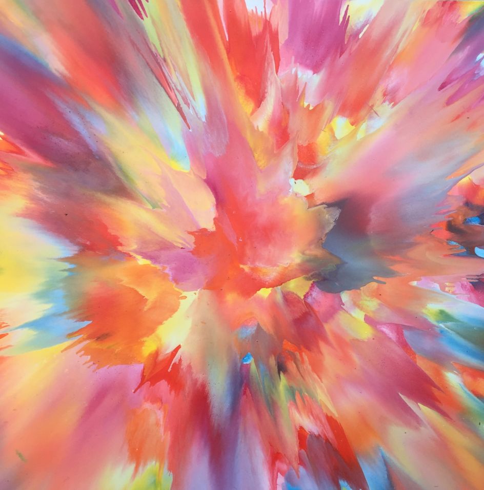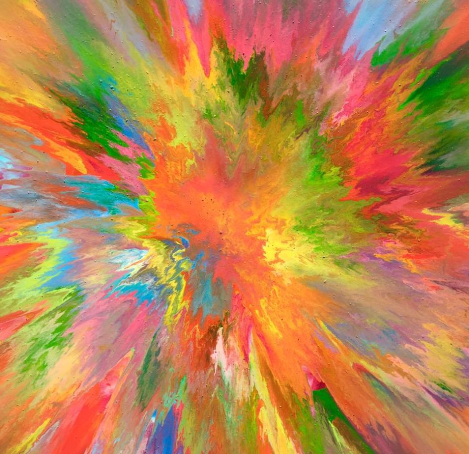 "Using a stream of consciousness composition, I amalgamate the colours into a literal representation of my breath and mark the present act of creation."