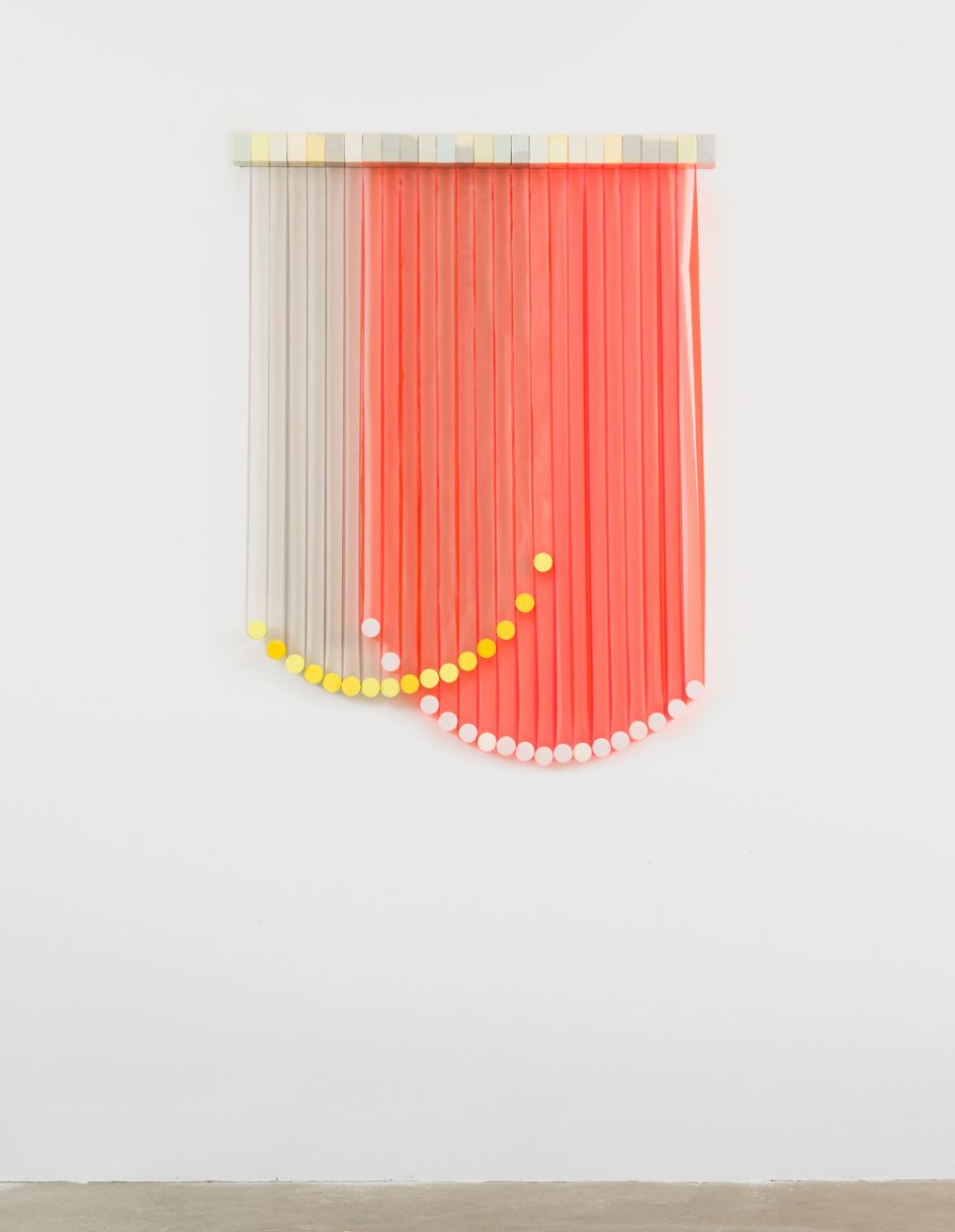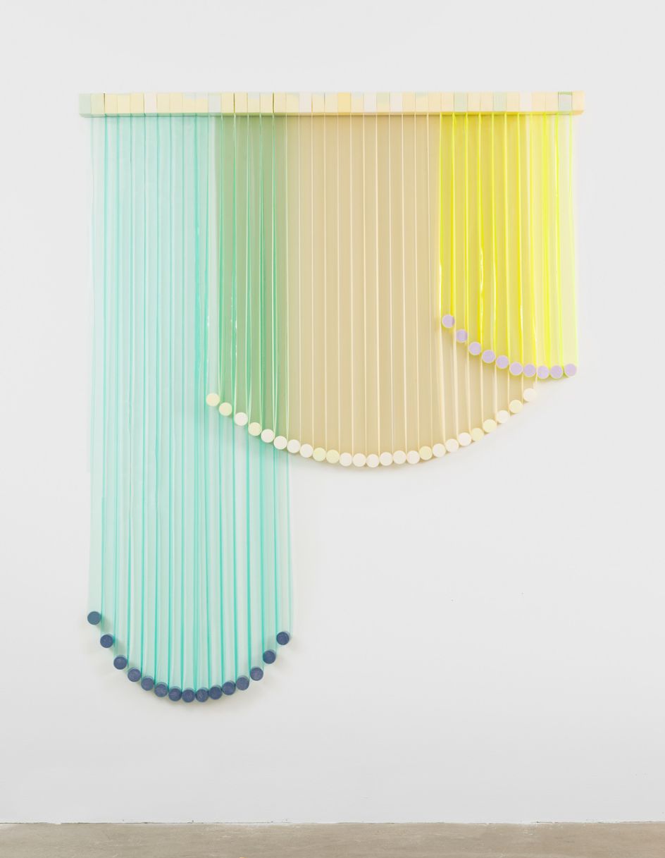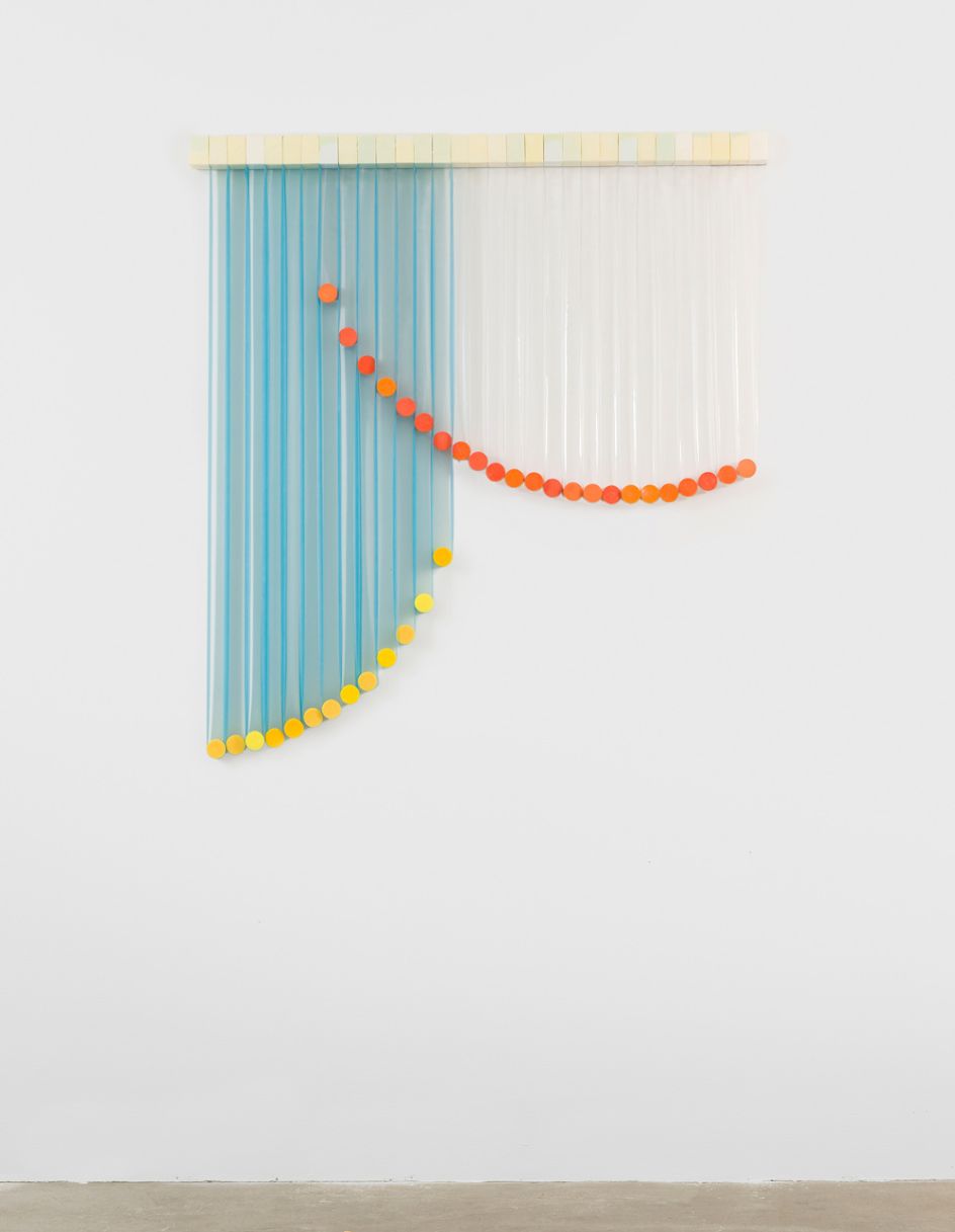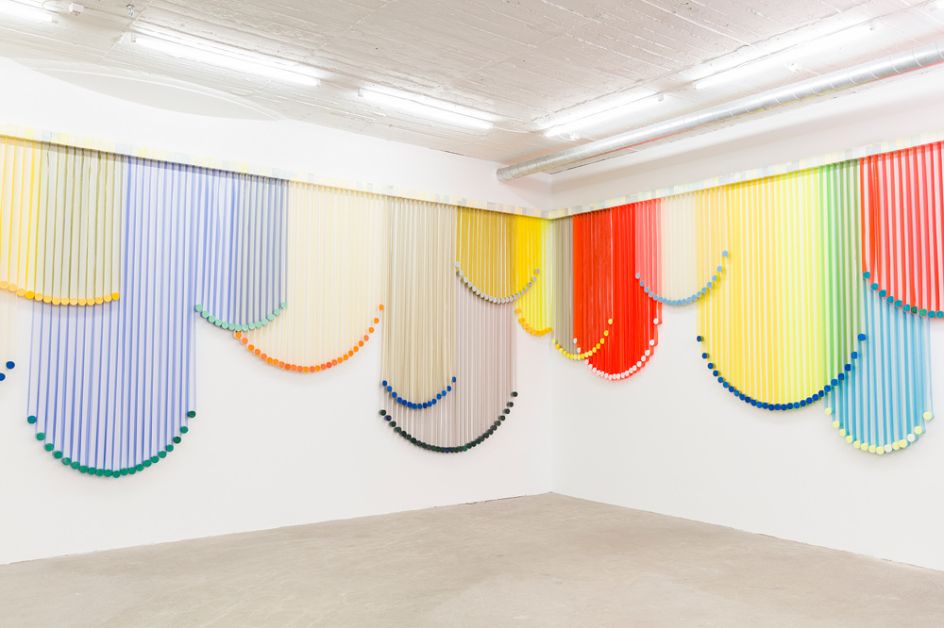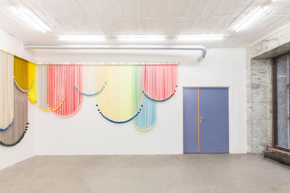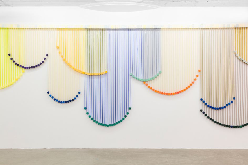 For her latest series 'Untitled', American artist Eva LeWitt created colourful hanging sculptures, which are currently on show at the VI, VII, Gallery in Oslo.