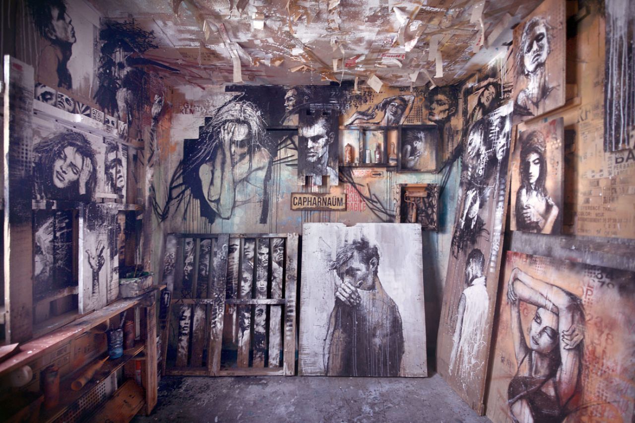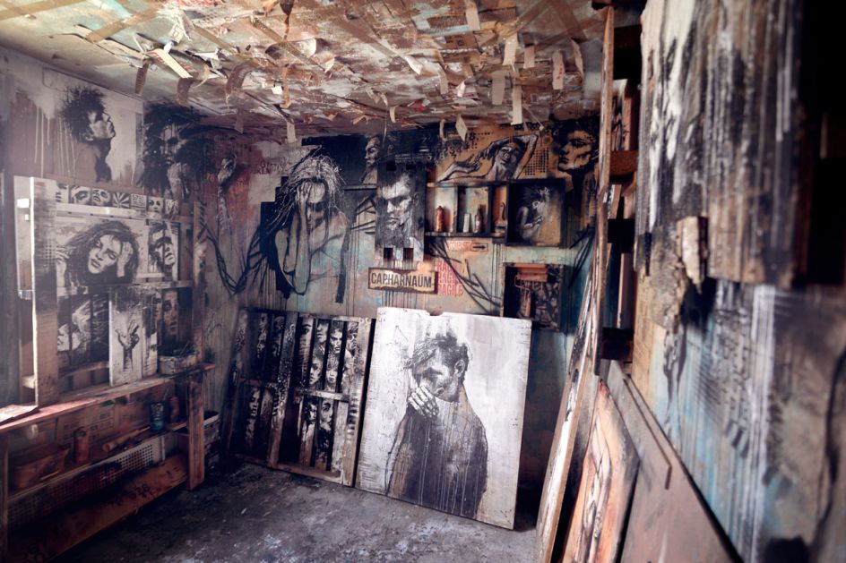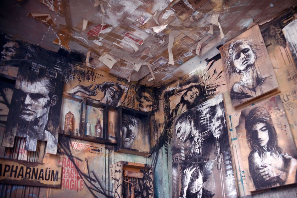The artworks – known as Capharnaum – are painted on anything that has been found discarded in the apartment's rooms, including disused pallets, cardboard and old pieces of furniture. Although the portraits are a painful reminder for the people who once lived there, they actually piece together the happy life that existed in the apartment building during its heyday.