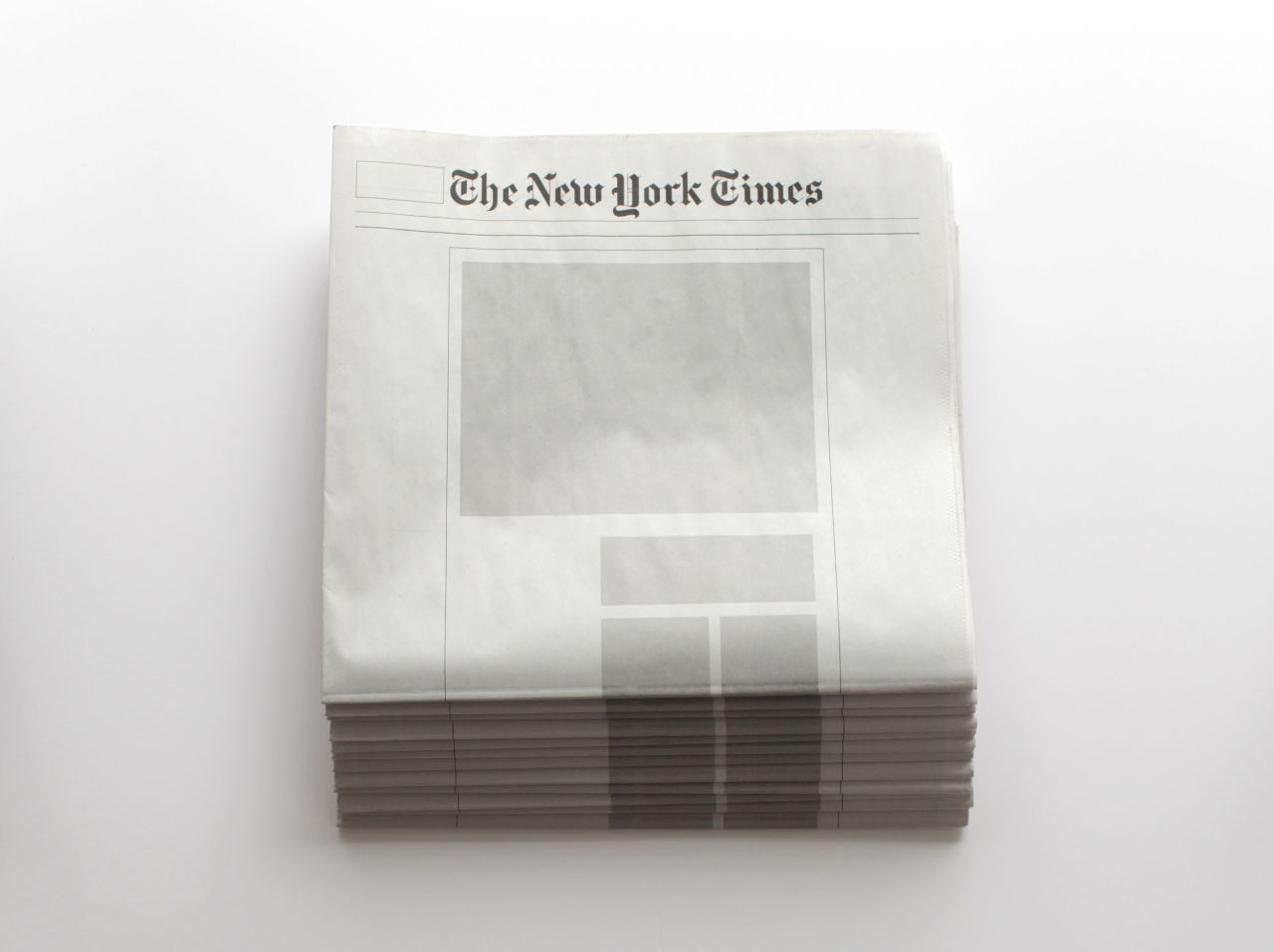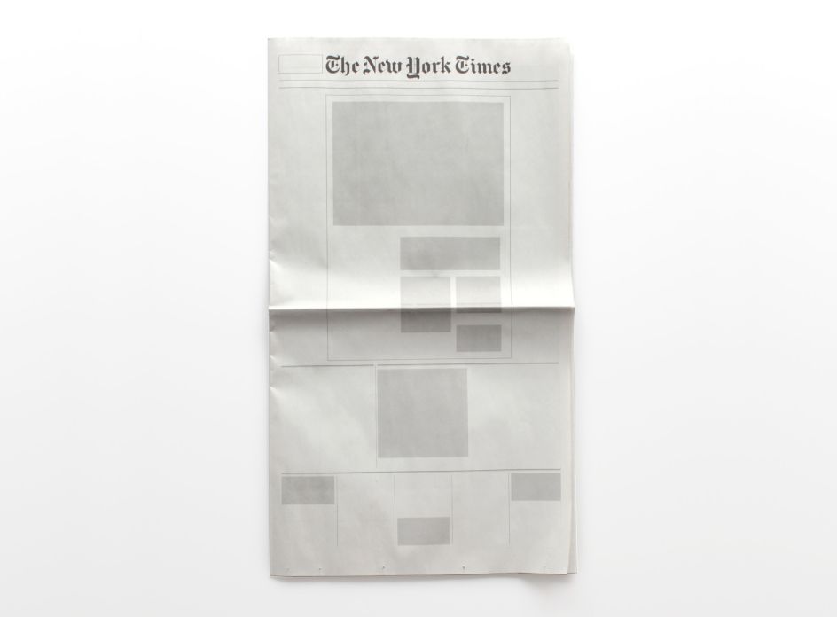 Some switch off by simply watching telly, or reading a book, or even actively socialising IRL with friends and family. Ernst, on the other hand, took the more drastic measure of reimagining the world’s most famous newspapers as totally devoid of words and images for his Nothing in the News series. In their place, we just find beg and grey boxes, the shadowy promises of information that simply isn’t there.