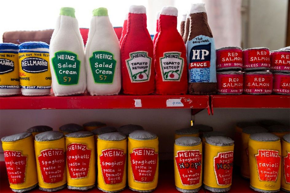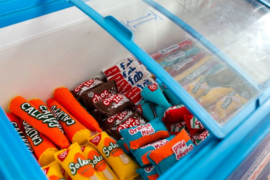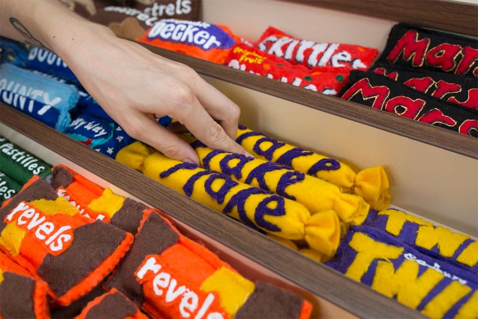 In 2014 Lucy Sparrow's famous month-long installation, The Cornershop, brought the plight of the demise of the beloved local corner shop to London. She restocked an abandoned store with felt bean cans, cigarettes, marmite and porn mags – each British item meticulously hand-sewn by the artist herself. It was an unprecedented success delighting thousands of visitors and press alike.