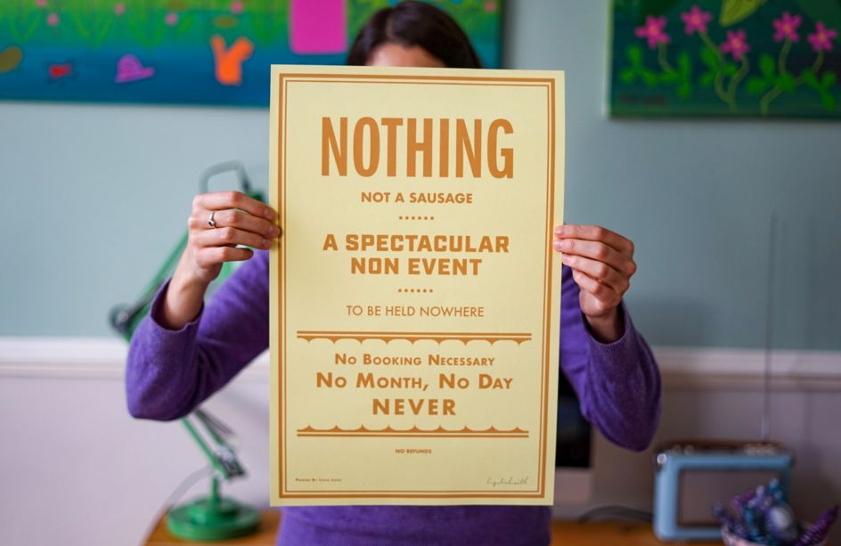 With block type and traditional printing, the typographic artworks raise a smile amongst the gloom. "Everyone has missed something they would normally do, whether it be an art exhibition, a country show, a music festival or a sporting event," Lydia adds. "It's astonishing to think this is the first time in history where very few events have been happening across most of the world."