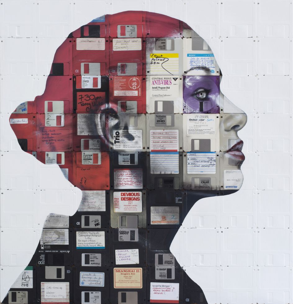Enter Nick Gentry. An artist on my wavelength. Someone who is taking something truly nostalgic and using it as a canvas for his paintings. The London-based creative paints portraits on top of obsolete tech materials, such as VHS cassettes and floppy disks that contain people's memories.