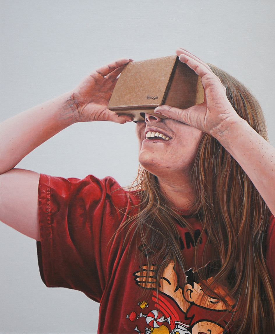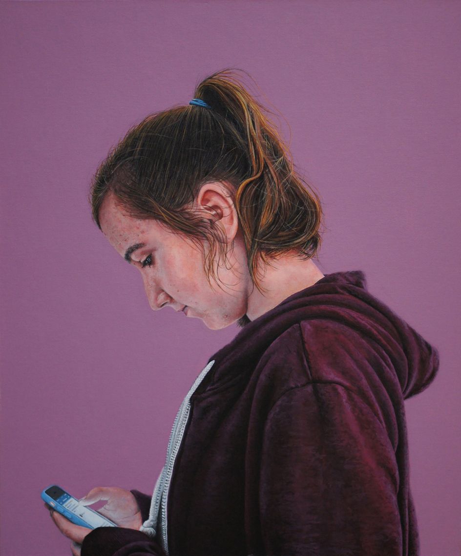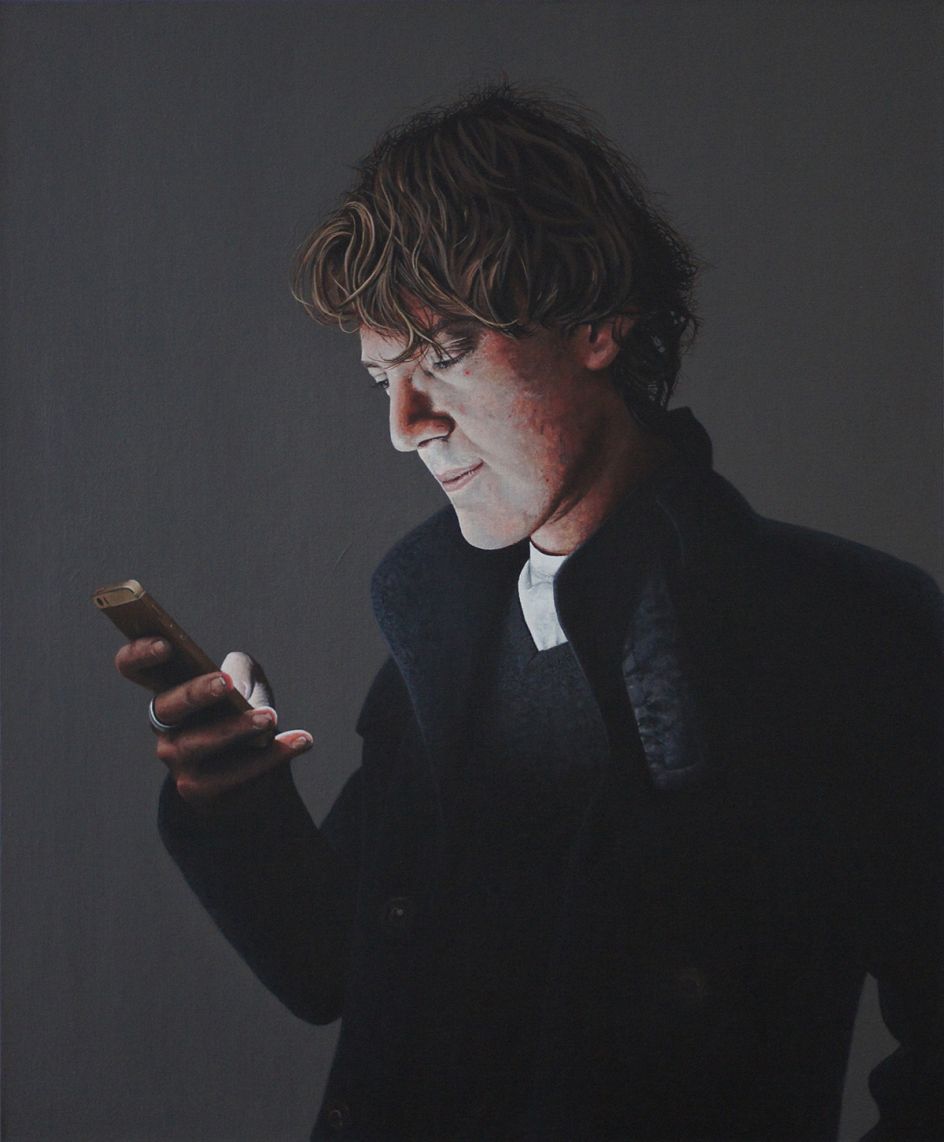"Seeing everyone transfixed by their glowing devices is now the most ubiquitous pose on the planet," says Peter Davis, an award-winning contemporary figurative painter who loves to explore the subject of humanity and our relationship with technology.