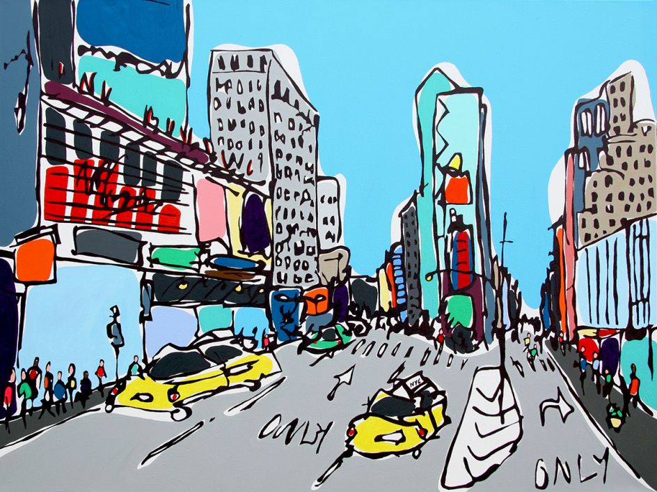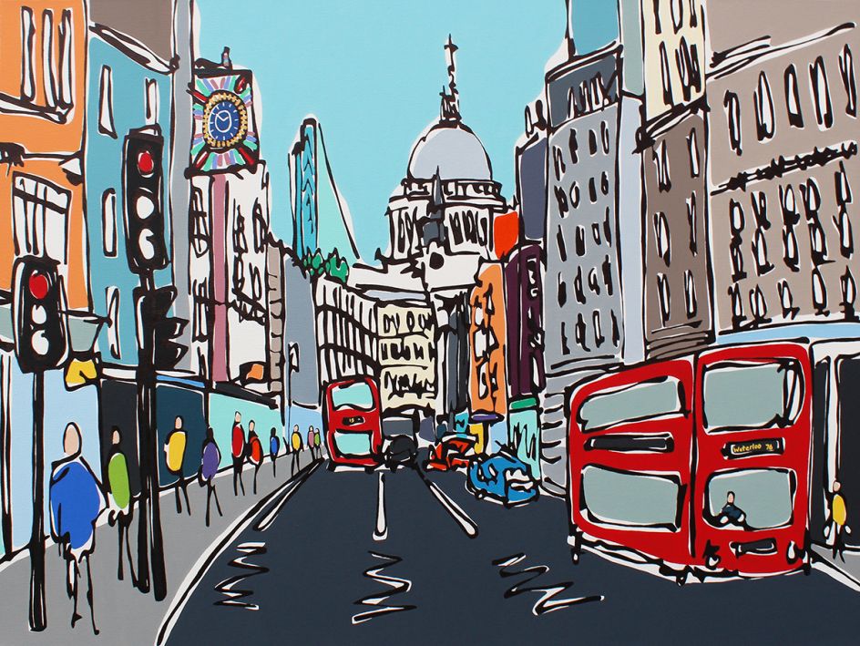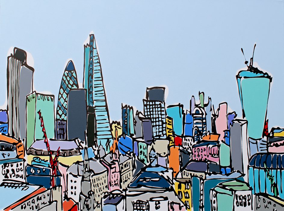 It sounds rather cliché but it has to be London and New York. With such variety in structure and shape – they both have diversity and complexity for me to collate and then simplify by creating fluid lines and free-flowing coverings of colour.