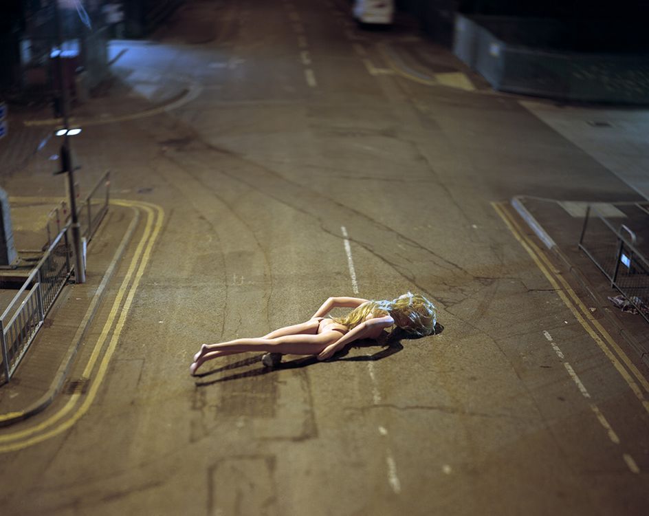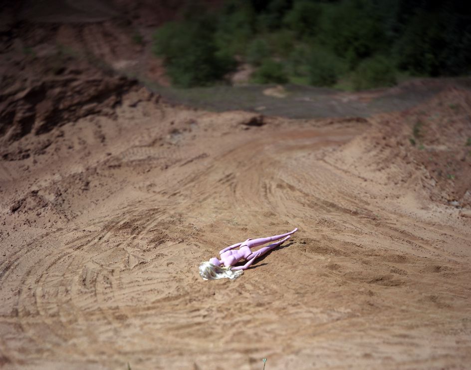 A culmination of five years of self-funded work, Hunter’s series centres around a 20-foot scale sculpture of a child’s doll (which you will recognise as Barbie), made of polystyrene and fibreglass that took six months to create. The sculpture was then photographed in deserted locales using various traditional optics and lenses.