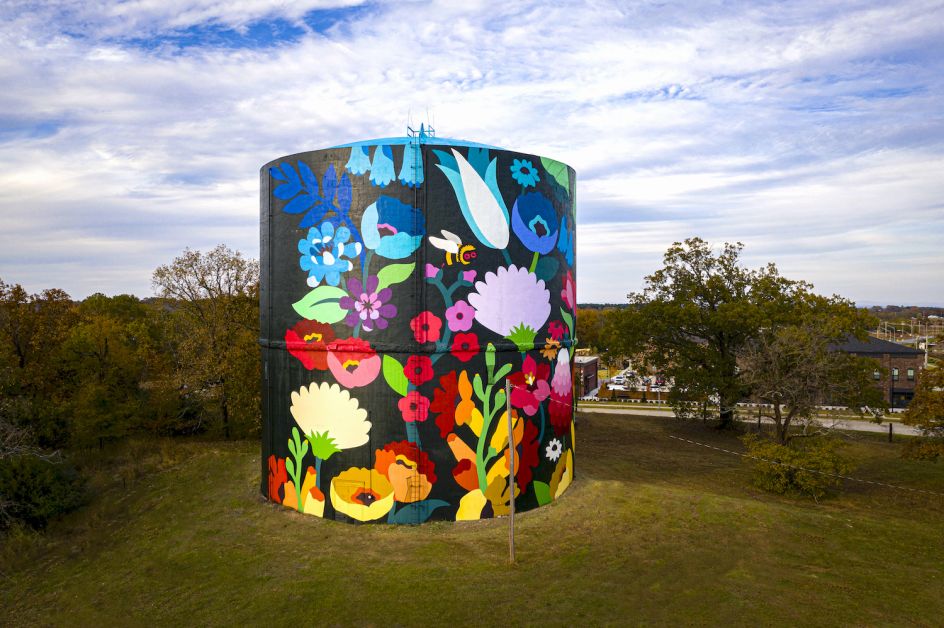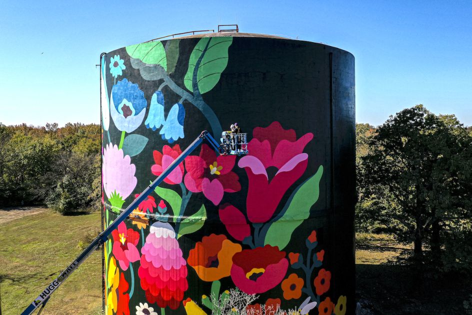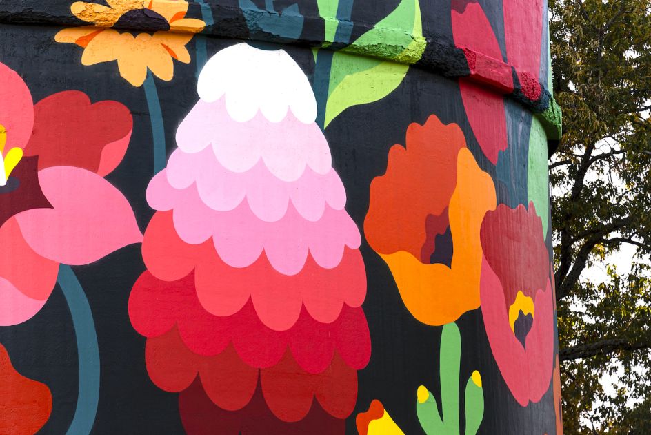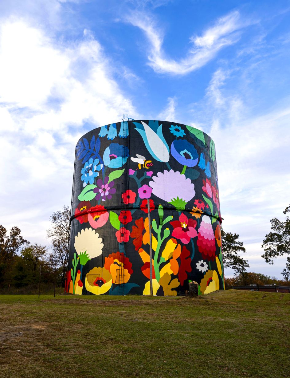 If you happen to visit Fort Chaffee in Arkansas this year, you'll undoubtedly spot a giant former water tower on the horizon, covered in colourful gradient pattern and featuring larger than life psychedelic illustrations of varied flora and vegetation from the region.