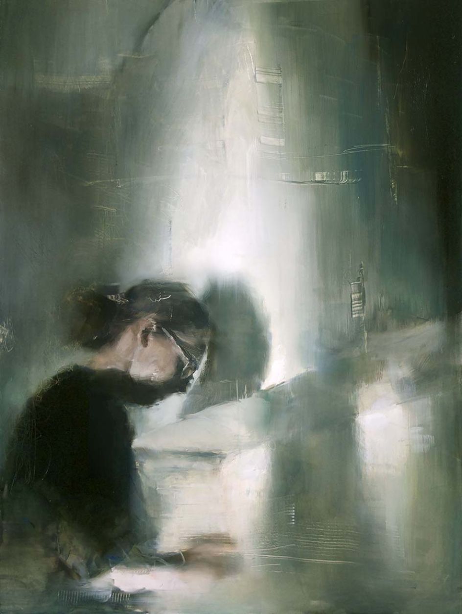 "My inspiration is to document the world and people around me through my personal lens," explains Britt Snyder, an artist from Boston. "I paint images of the people in my life with a focus on capturing a mood.