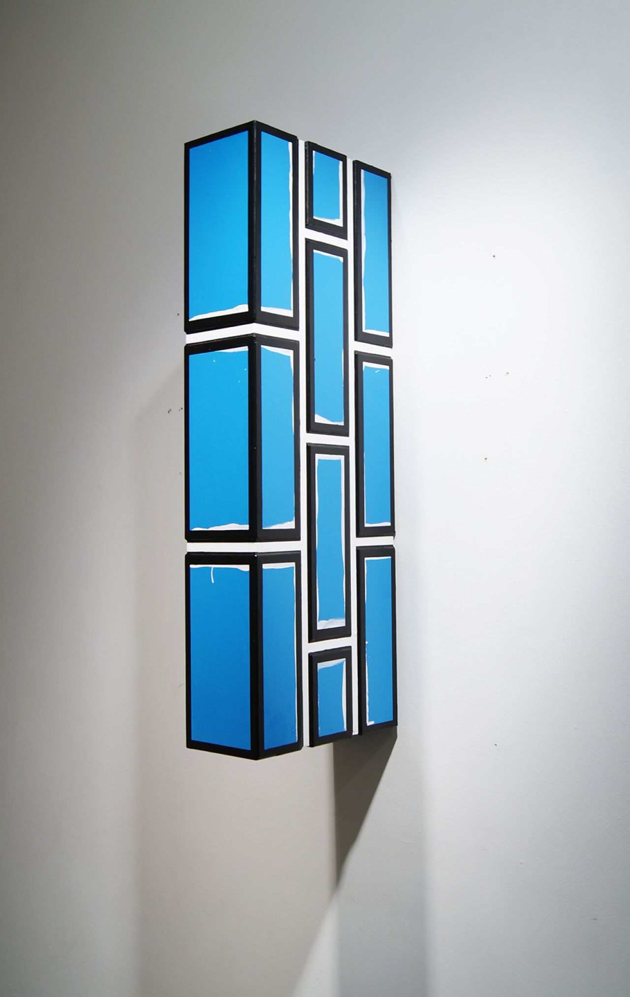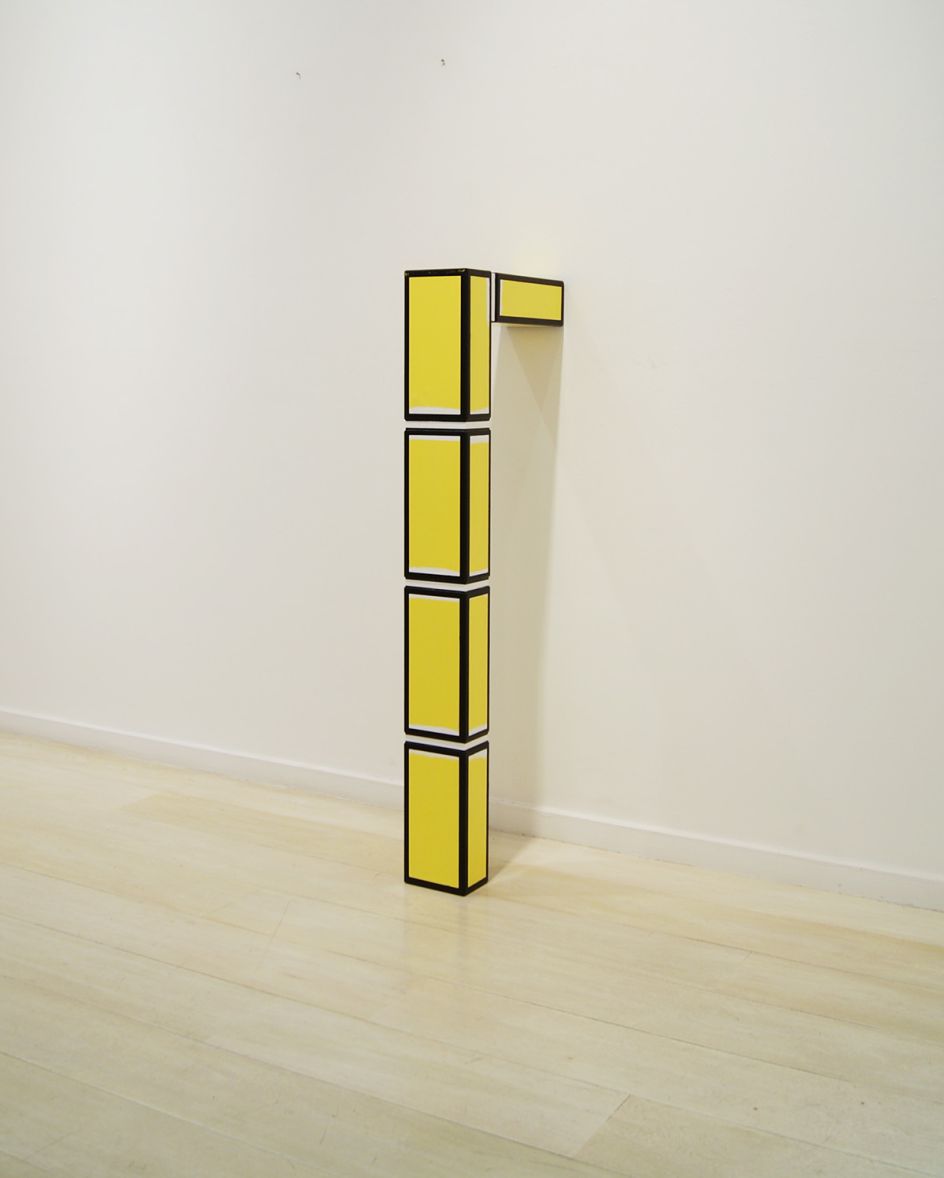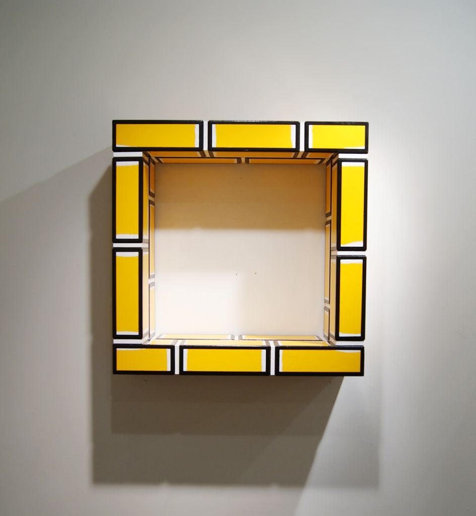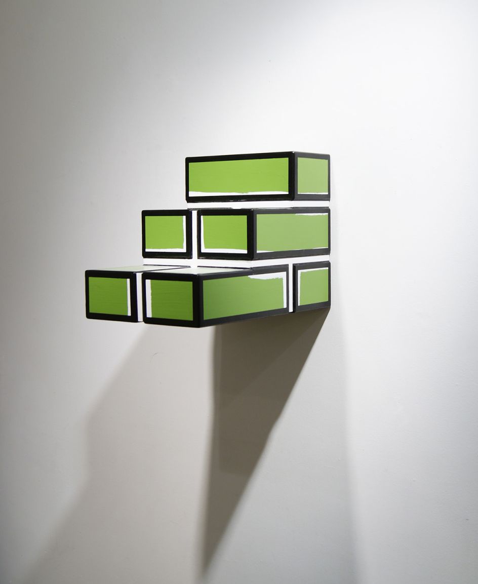 In the café, Woods’ works Bad Bricks are beautifully simple sculptures made from wood and resembling cartoon bricks. Their vibrant colours, bright white mortar and thick black edges offer a joyous celebration of these most mundane of building materials.