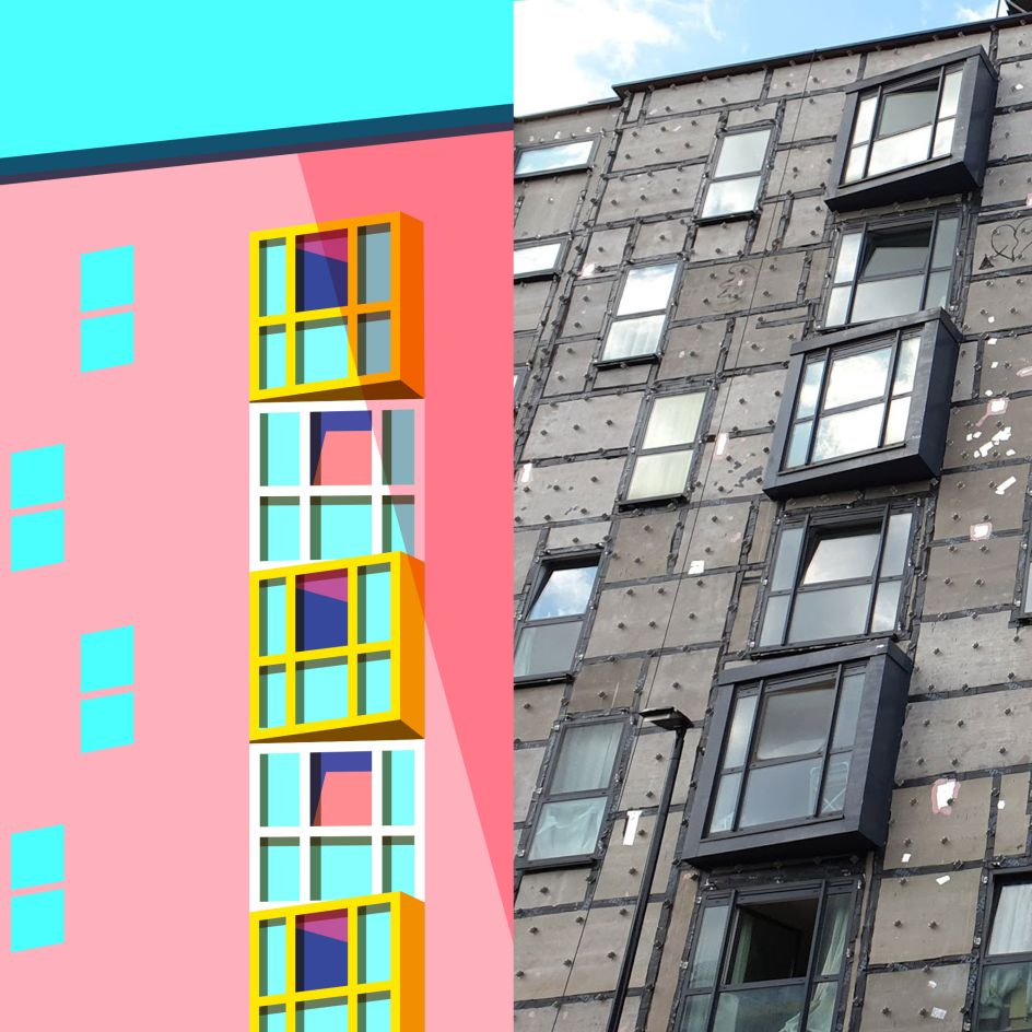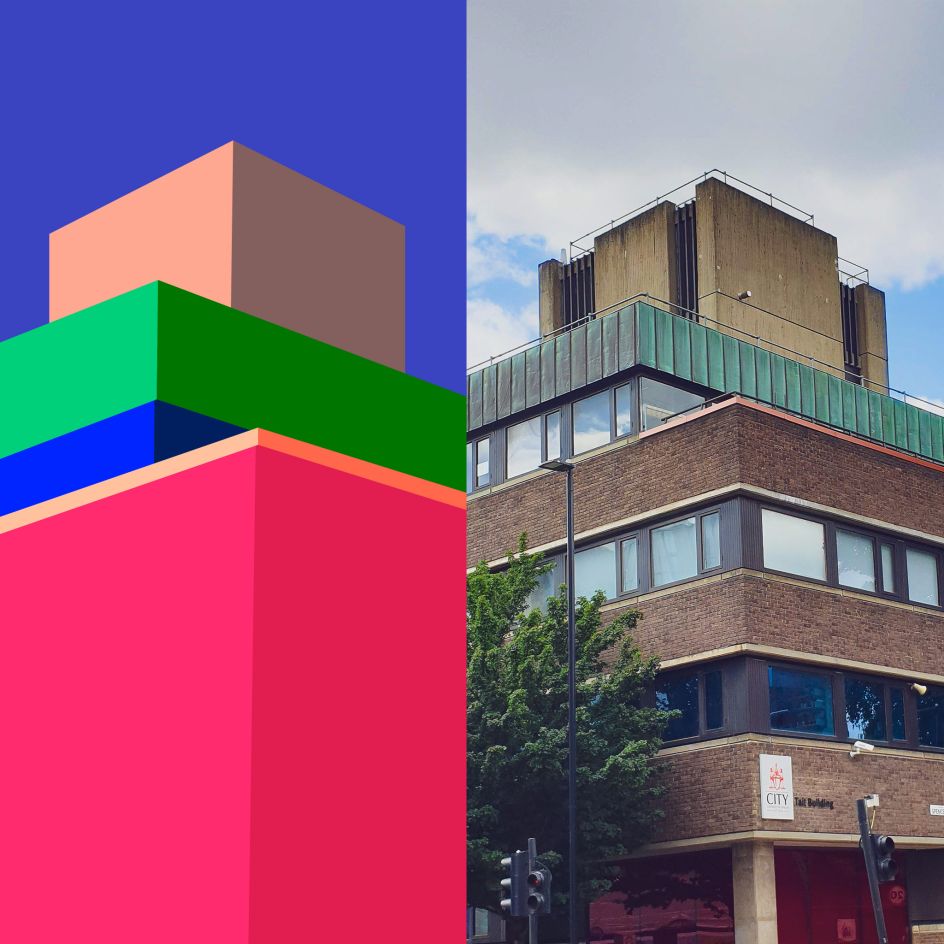 "The Brutalist aesthetic is often seen as cold and sterile, but I have discovered the joy and optimistic side of this iconic piece of London urban architecture. With bold solid colours and shapes, I hope to show the world optimism and resilience."