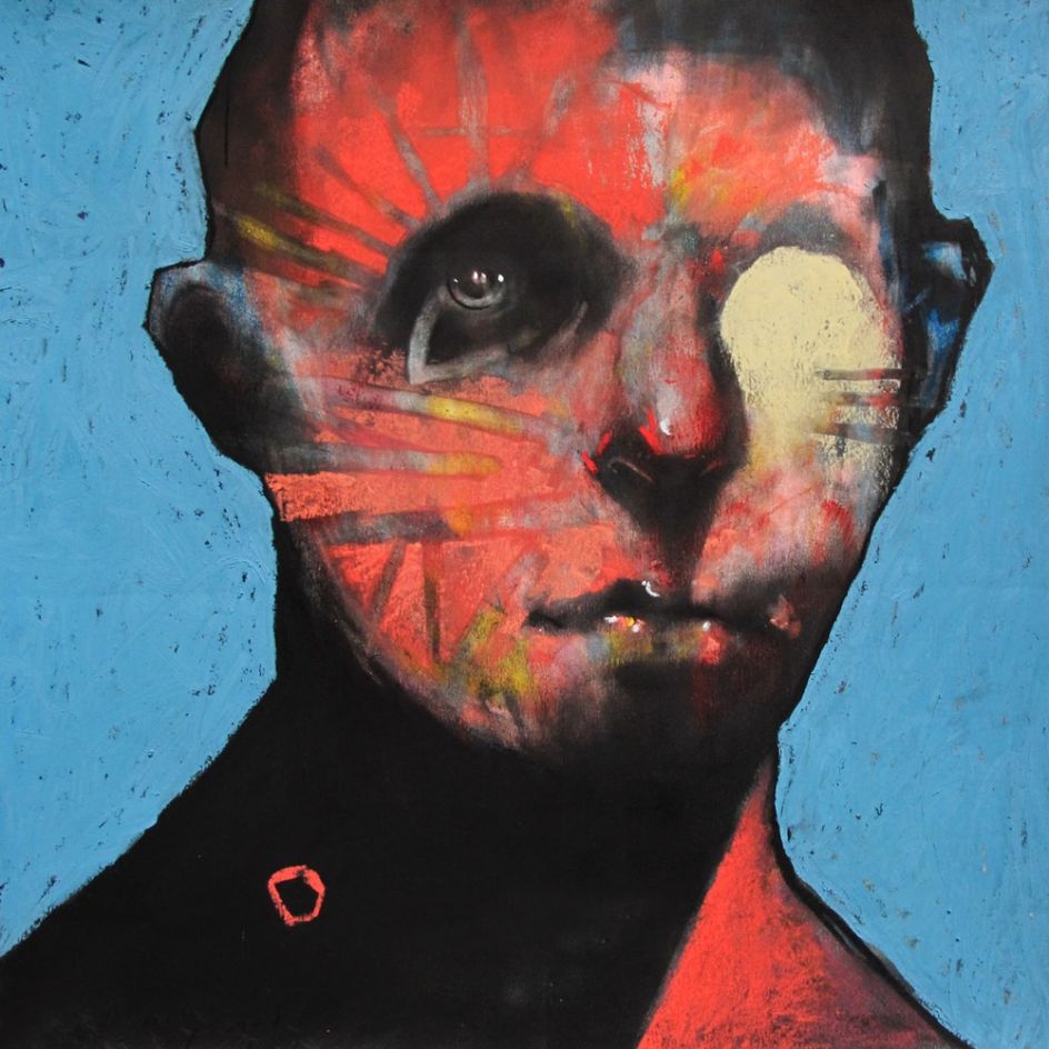 In his intriguing series The Barstool Philosophers, British artist Joseph Loughborough draws multiple layers of charcoal and pastel colours finished with the heavy texture of Oilbar to create portraits of mysterious characters.