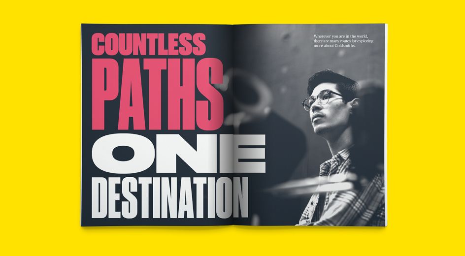 Working with regular writing partner Kate Van der Borgh, the agency's starting point was to craft a compelling and flexible approach to copy: "Our one Goldsmiths concept placed eclecticism, individuality and diversity at the heart of the solution," explains Creative Director, Matt Baxter. "With a similarly eclectic approach to typography, we brought this melting pot of disciplines, specialisms and subjects to life."