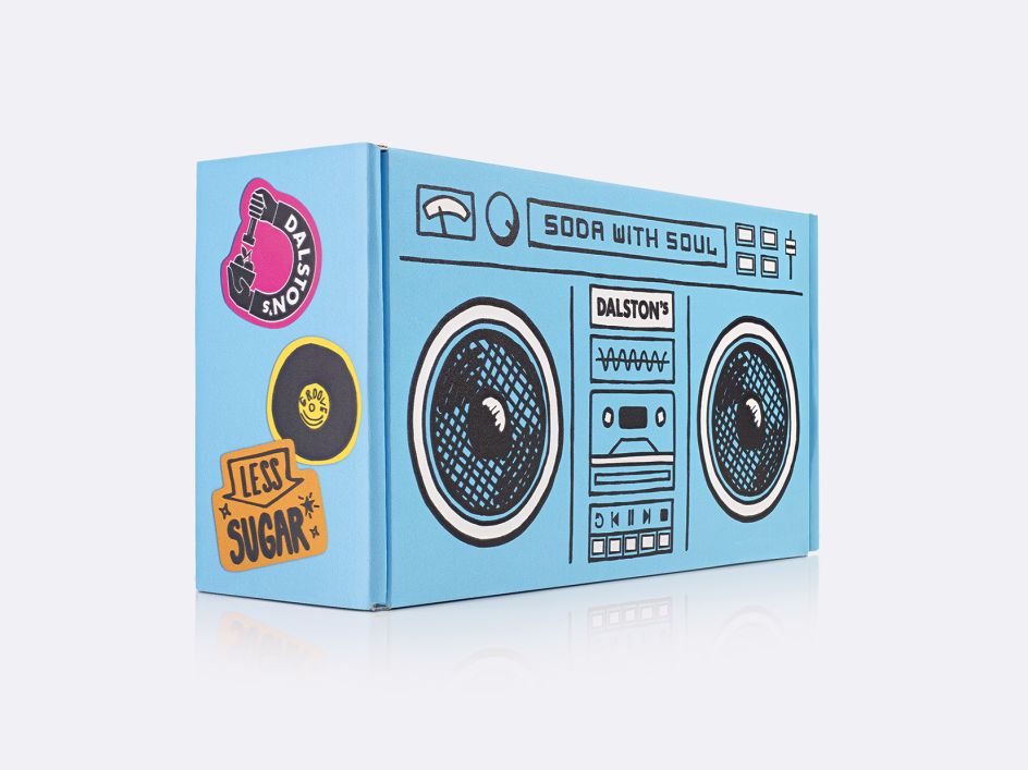 Made entirely from card, the boxes also stand by the brand's sustainable values and commitment to A Plastic Planet – a charity that's working towards a plastic-free supermarket aisle. "The boom box shippers confirm Dalston's status as the credible, cool player in the craft soda category as it continues its journey from niche start-up to international scale-up," says B&B studio.