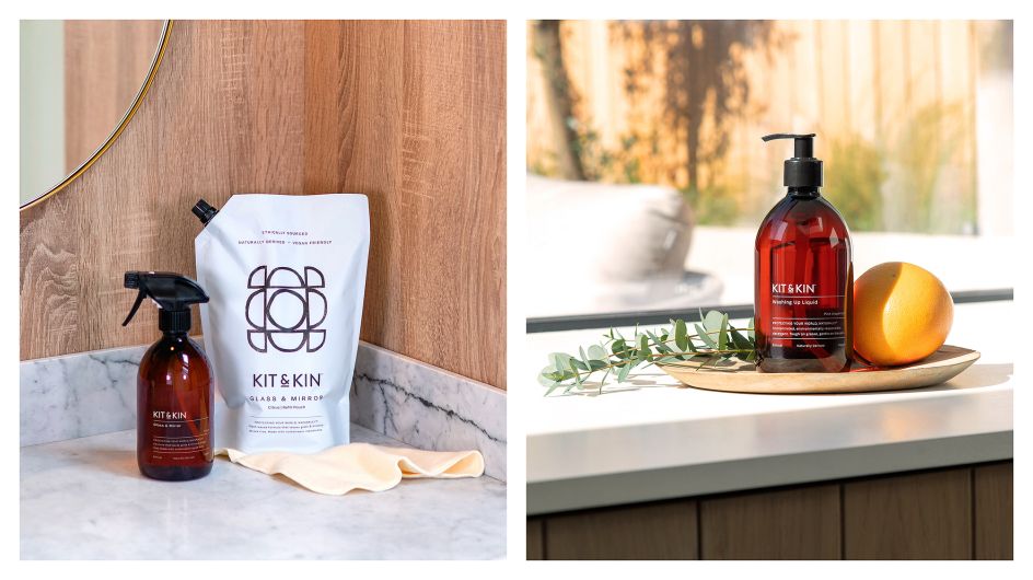 Made in the UK, Kit & Kin's new range of 12 eco-cleaning products includes hand-wash, all-purpose cleaner, multi-surface cleaner, and glass and mirror cleaner.