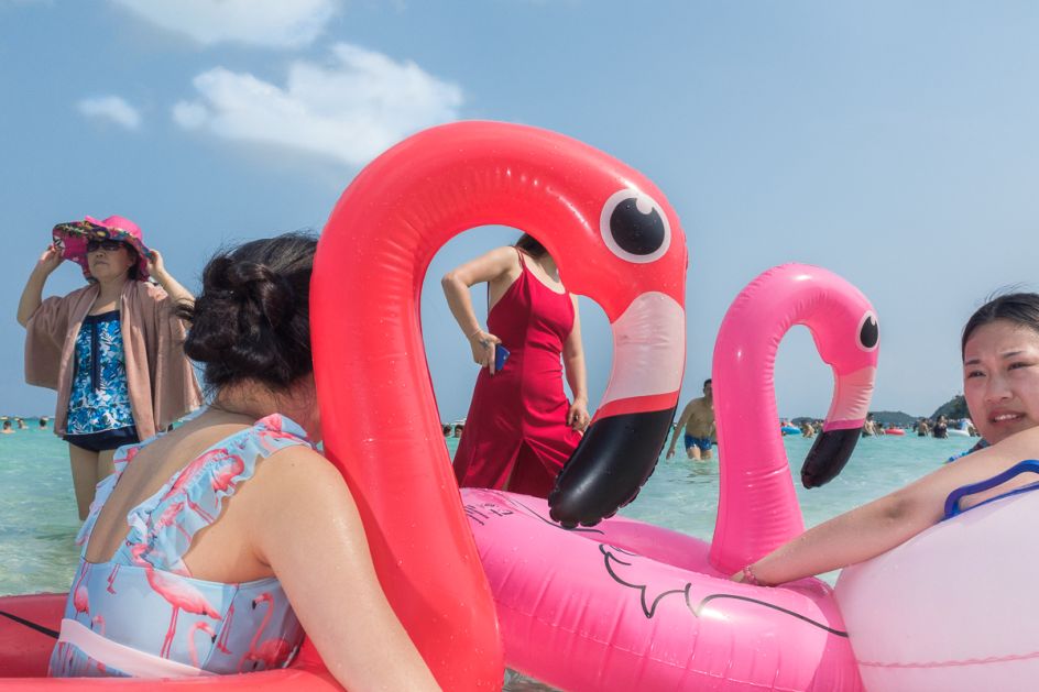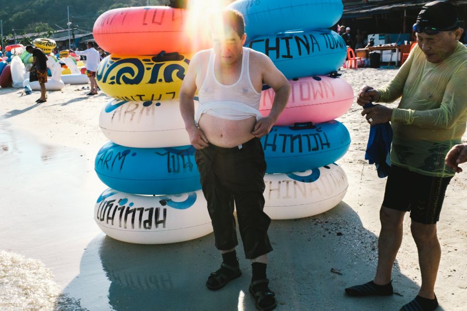 Although these photographs were taken in the Pattaya Beach resort of Thailand, they include scenes that are familiar to many of us. An inflatable unicorn, the application of suncream to vitamin D-deprived skin and sandy bottles of beer. Ahhh, the memories.
