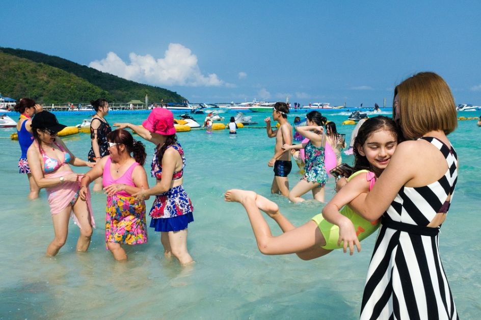 He explains: "Pattaya Beach resort, a popular destination for foreigners in Thailand, is well known for its nighttime sex industry, but during the daytime, tourists and Thais relax together on the beach.