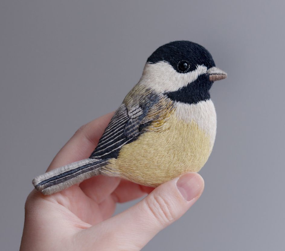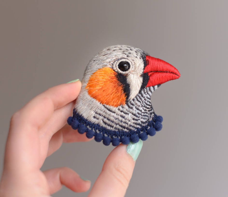 Barn owls, ravens, chickadees, finches and parrots – each of her jewellery pieces are incredibly lifelike and showcase the breadth of Paulina's talent. Using a needle and thread in a rainbow of colours, Paulina's works can take several days to complete and are not surprisingly sold almost immediately.