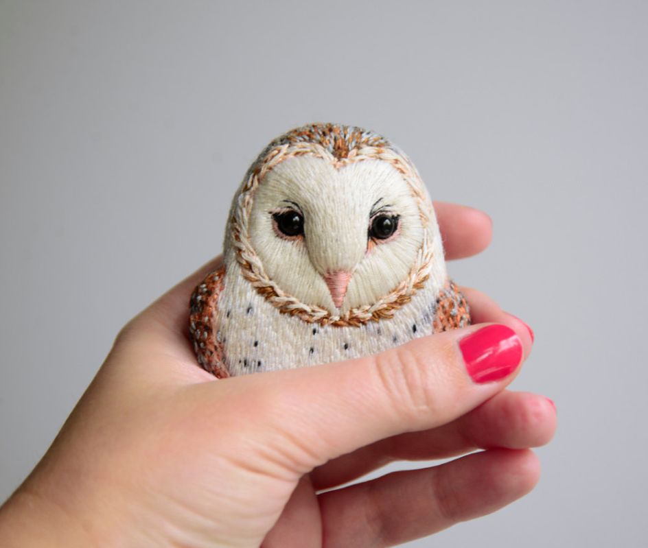Of the process, Paulina says she starts with felt sheets and cuts out the shape of the bird in question. She then sews layers of felt before the begins to outline the bird with thread. It's then a case of marking the direction of the feathers. She likes to start from the centre or a focal point like the bird's eye. And then she builds up each piece, almost like a painting process, but instead of paint and brushes, she uses a needle and thread.