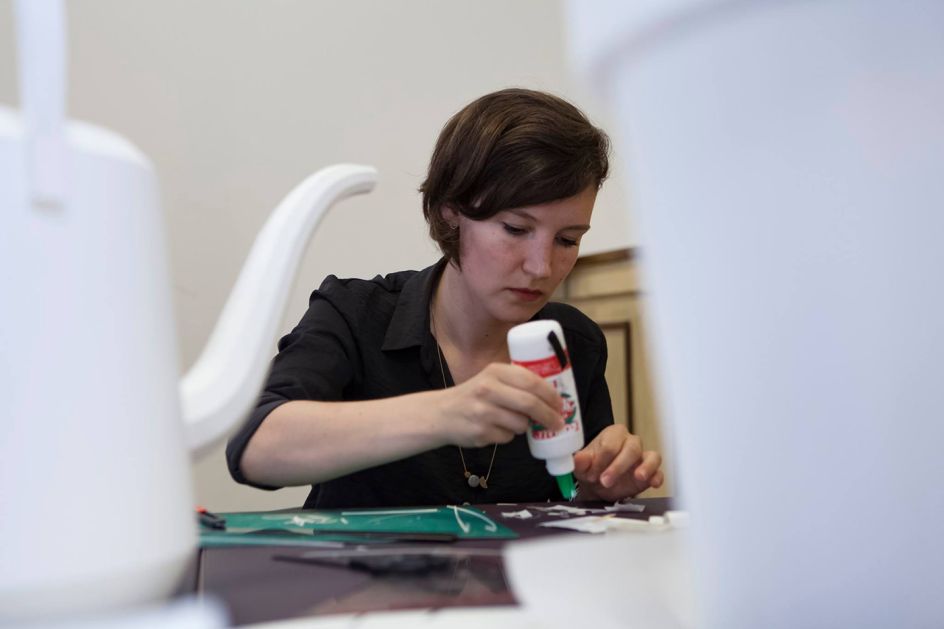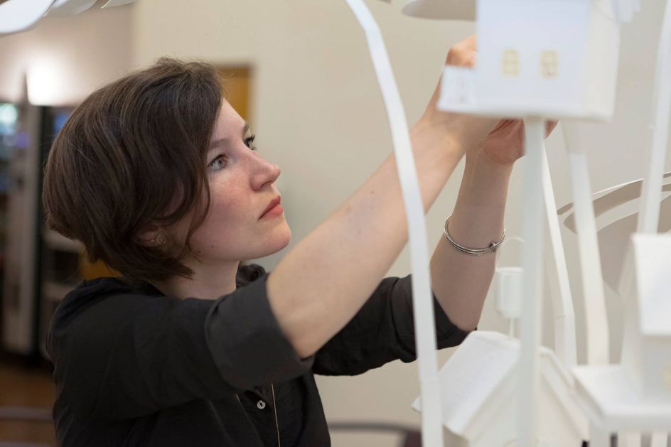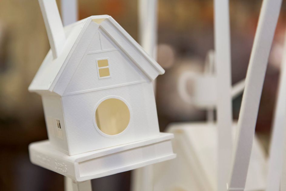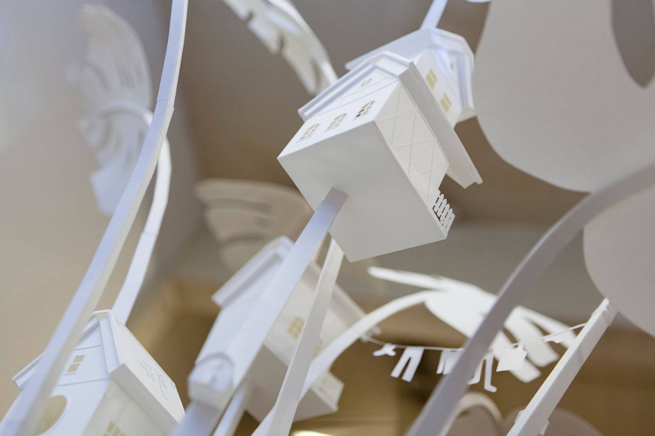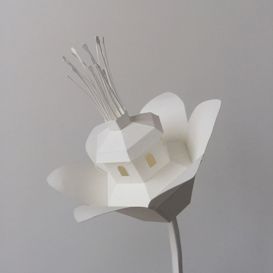 The Dutch artist creates intricate and meticulously constructed scenes out of paper, cardboard, and wood. She is inspired by her everyday surroundings – seemingly common household objects, architectural elements and automobiles are fused into magical landscapes. The hand-crafted scenes she creates are "vehicles for the imagination".