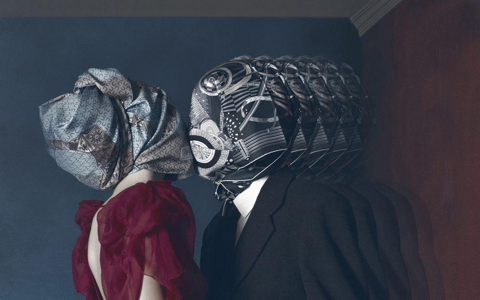 Estados de Conciencia is by photographer Gaby Herbstein. The title translates as States of Conscience, and is the latest series in her extensive body of work. The surreal theme allows for the exploration of imaginary worlds, where a man (Cristian García) and a woman (Carla Moure), almost like Adam and Eve, are led through dream-like scenarios.