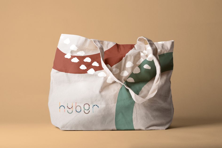 Inspired by the circular economy, Stockholm studio Bedow has created an identity for Hyber, a Swedish startup that rents out children's clothing to help its customers save money and be kinder to the planet.