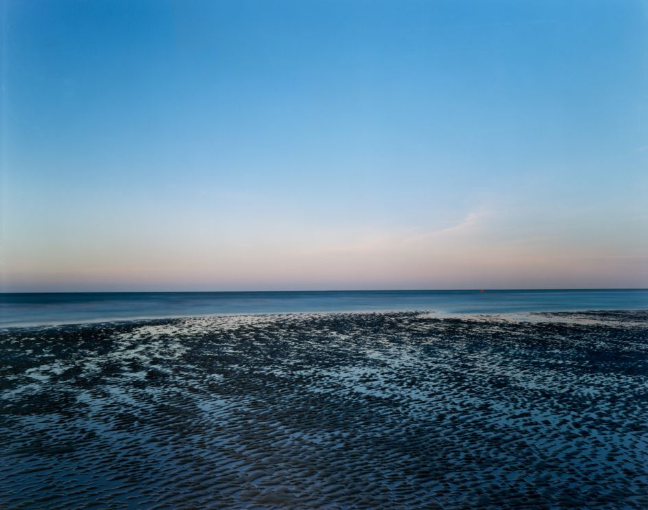 The images on show are primarily large-format colour depictions of the tidal landscape of the North Norfolk coastline: at once familiar, serene, and slightly menacing. According to Creake Abbey, where the works will be exhibited, Wright "has often described the experience of being in a salt marsh as being at the centre of a vast vortex of time and place".