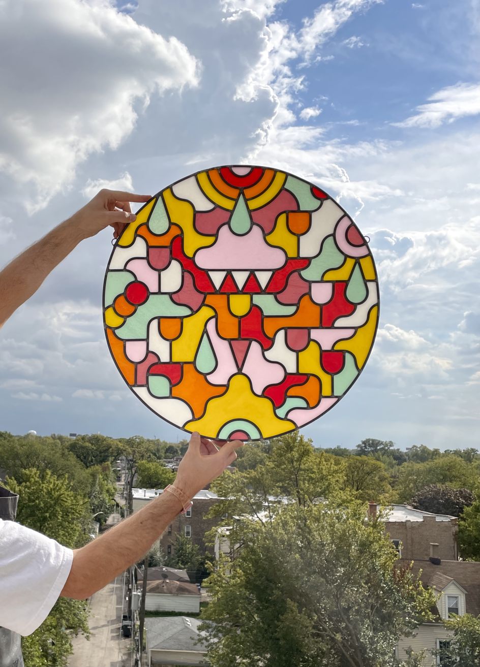 A glass panel will usually take Ben a few days or a week to assemble. "I get tired of the process quickly so sometimes they drag on for way too long," he adds. Once each piece is complete, he shares it from the roof of his studio building on Chicago's west side. He's subsequently built up quite the following on Instagram where fans enjoy seeing his latest creations. "Depending on the time of day, the camera's usually pointing south or west toward Oak Park," he says. "It can be a chore to chase the sun for proper glass illumination but rewarding when it happens."