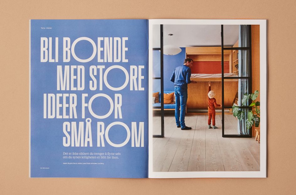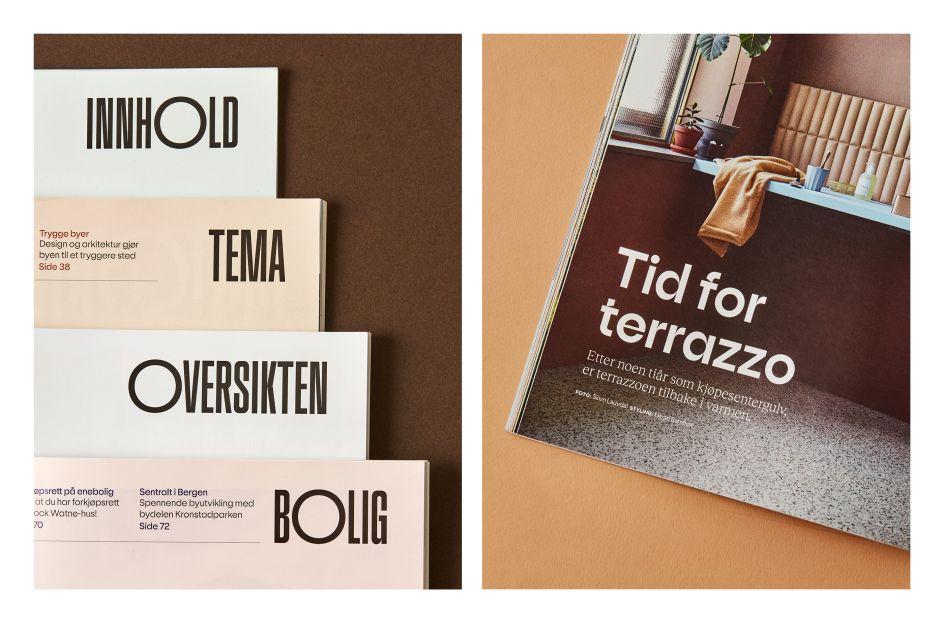 Many of these design decisions were based on the publication's history from the last 72 years; including the geometric style of the 1950s masthead, which inspired Bielke&Yang to create a new custom typeface, OBOS Sans, that is also used as a display type elsewhere in the publication.