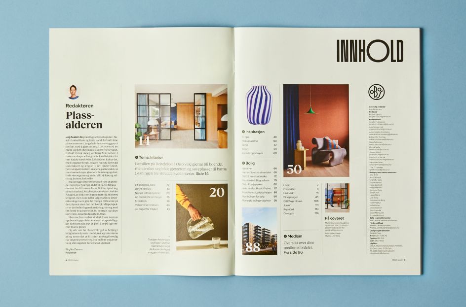 Following research conducted through surveys with readers and writers of the magazine, as well as OBOS-members; the team created a new format, paper, grid, layout, photographic style, illustrations, colour palette and typography.