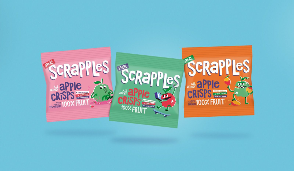 Design agency The Clerkenwell Brothers recently created the branding for fruit and veg crisps brand Spare Snacks, as well as working across its kids' range, Scrapple.