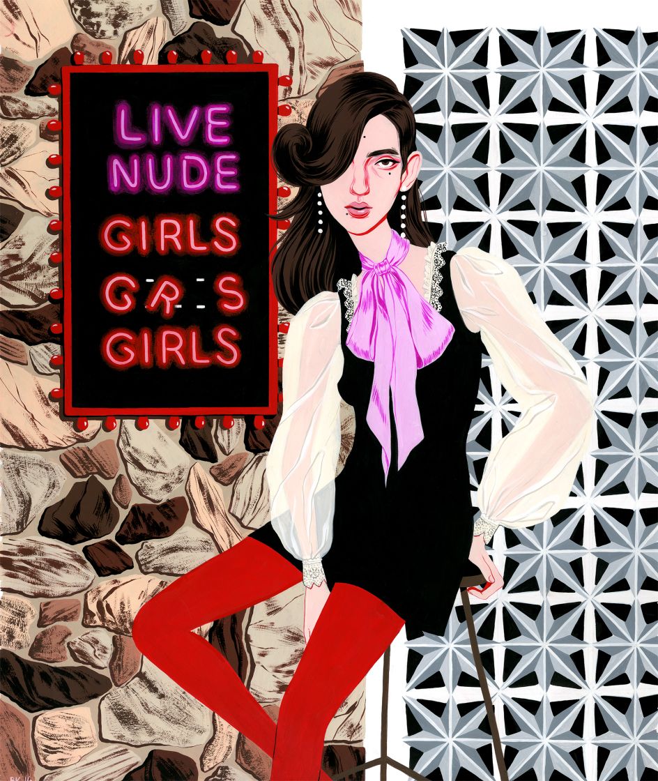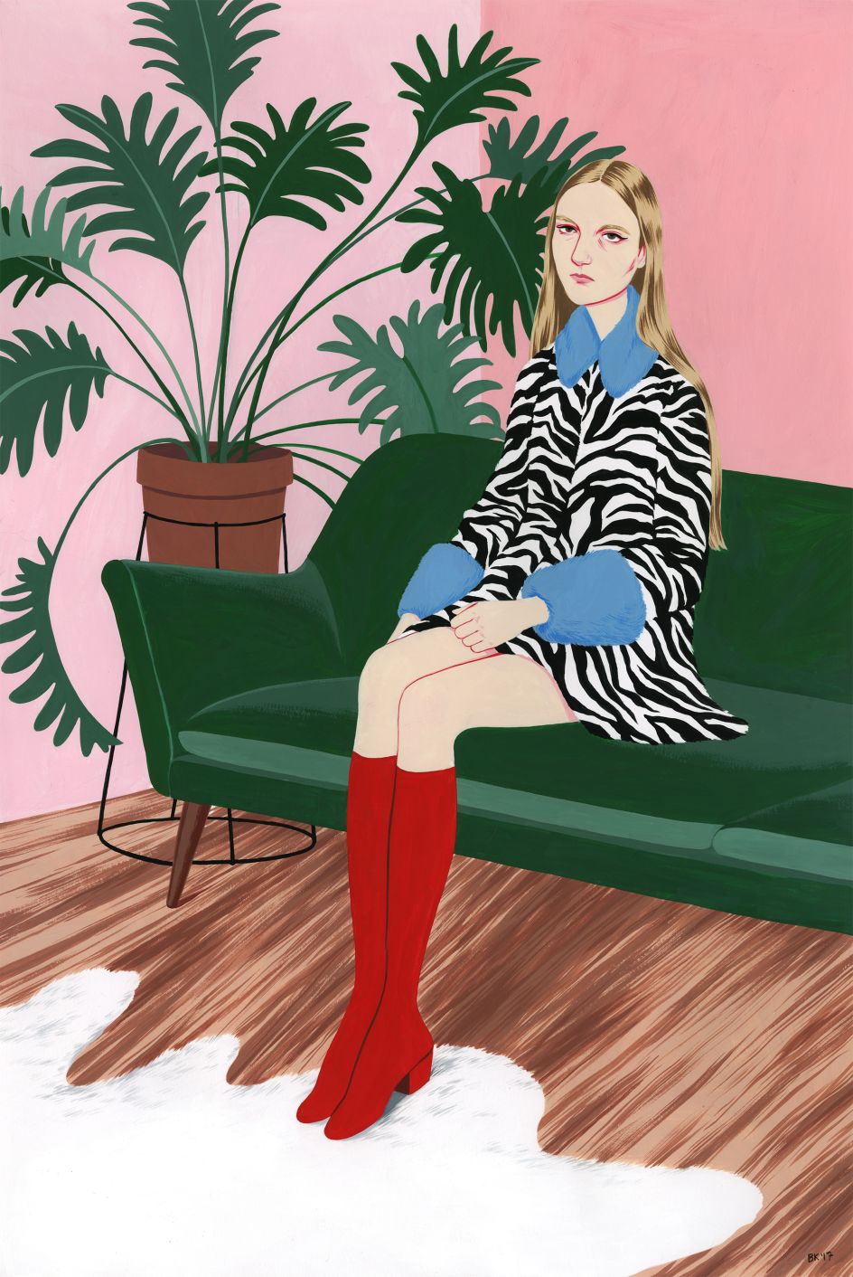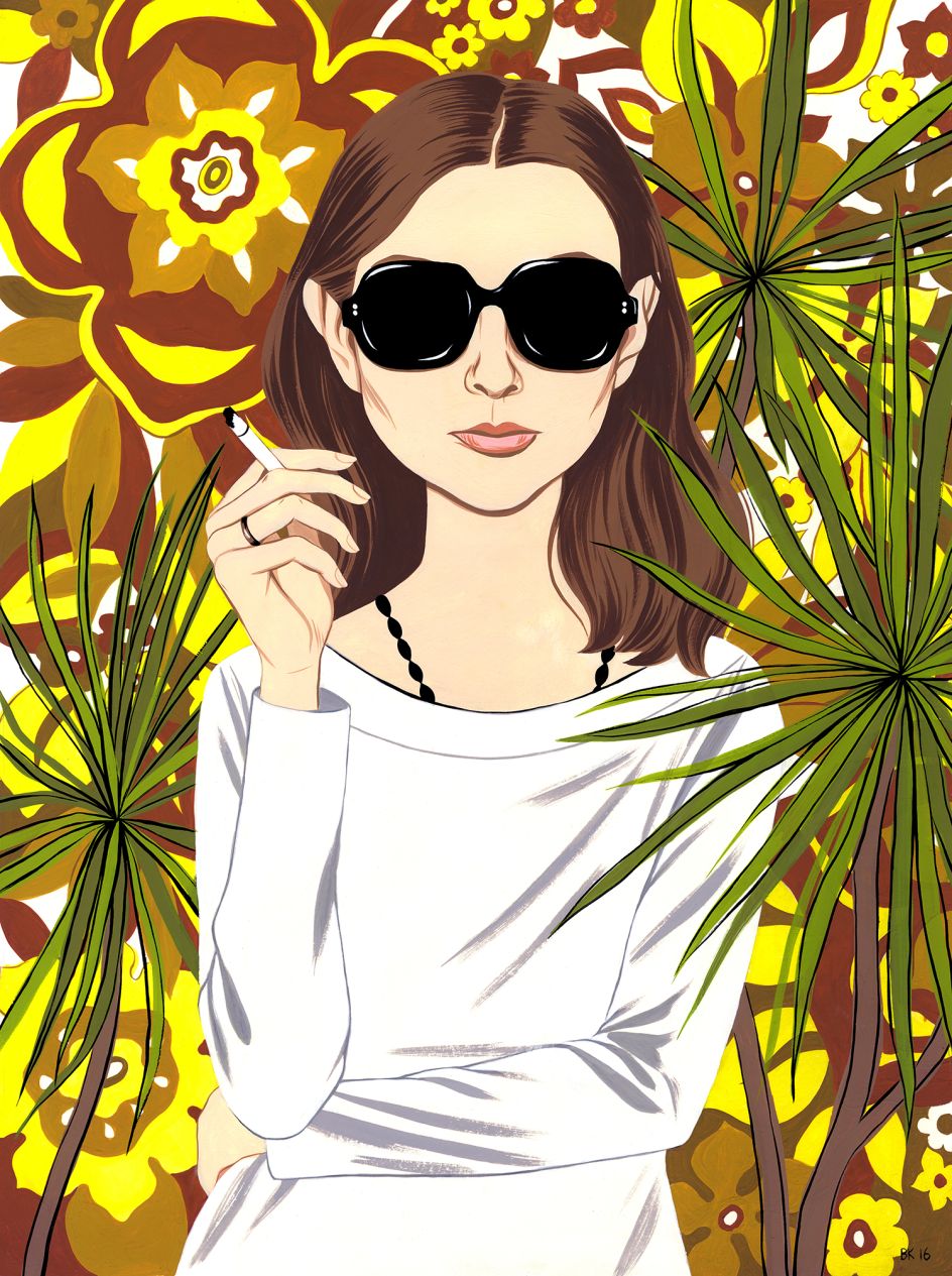 Based in Los Angeles, the artist is inspired by strong women, fashion, Googie architecture and a love of strong colours, print and plants.