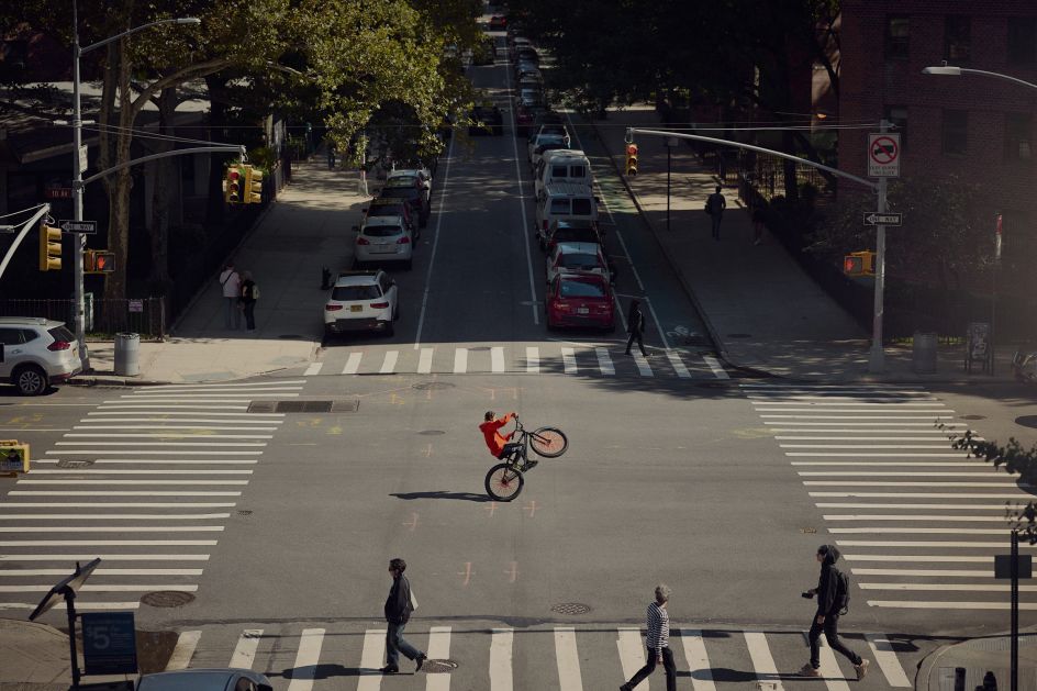 For this shoot, Matthew would generally meet a rider at a pre-arranged time and place, with sessions taking anywhere between an hour or just ten minutes. "A big challenge for shooting this beyond access to people and places was the logistics of remaining mobile. I made the most of the improved bike, e-bike and e-scooter rental services popping up across the States. Also, I sometimes rode on the back of riders' bikes, and at one point, I hard-haggled a rickshaw driver until my cash ran out for one challenging shoot where I dodged traffic in Times Square."