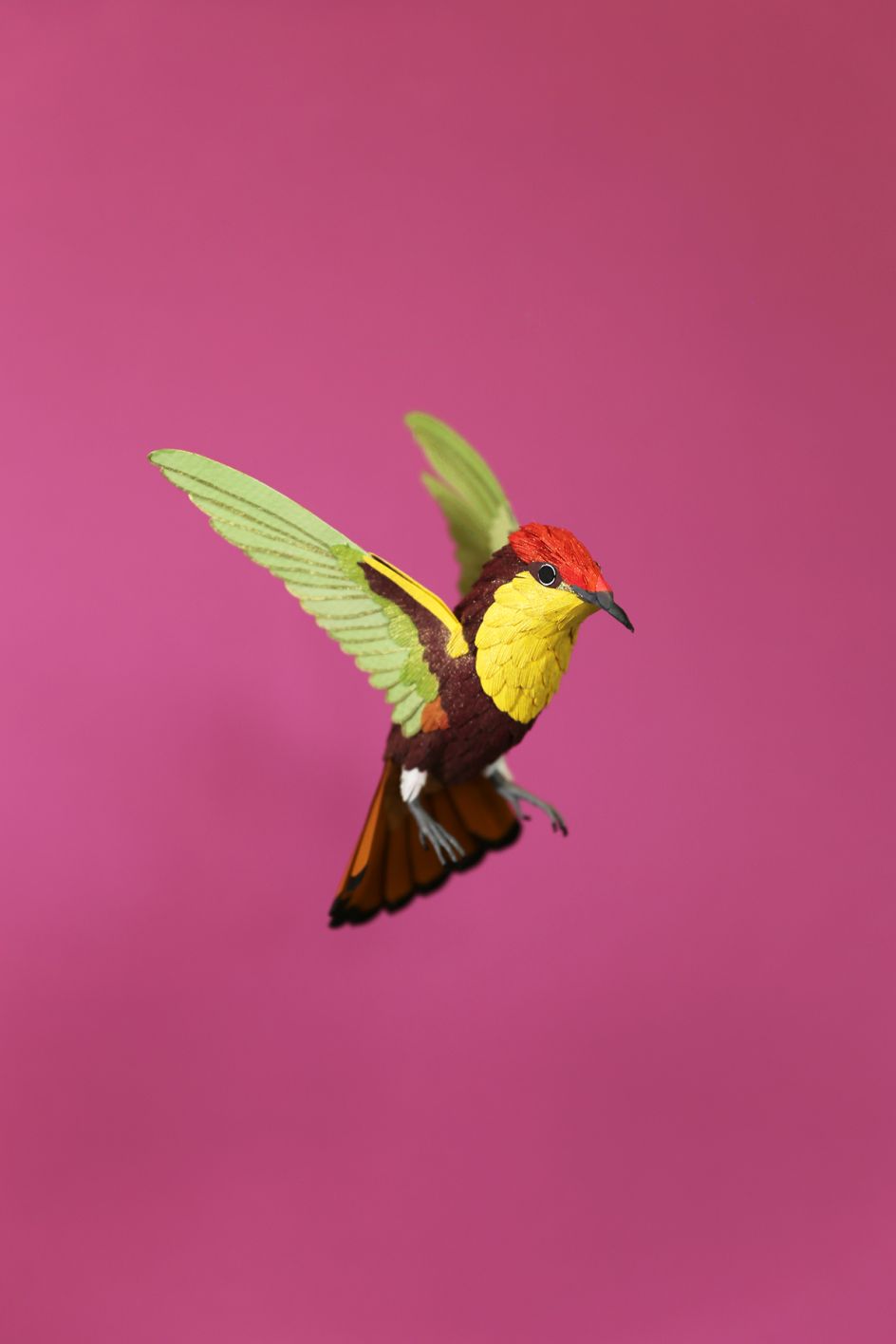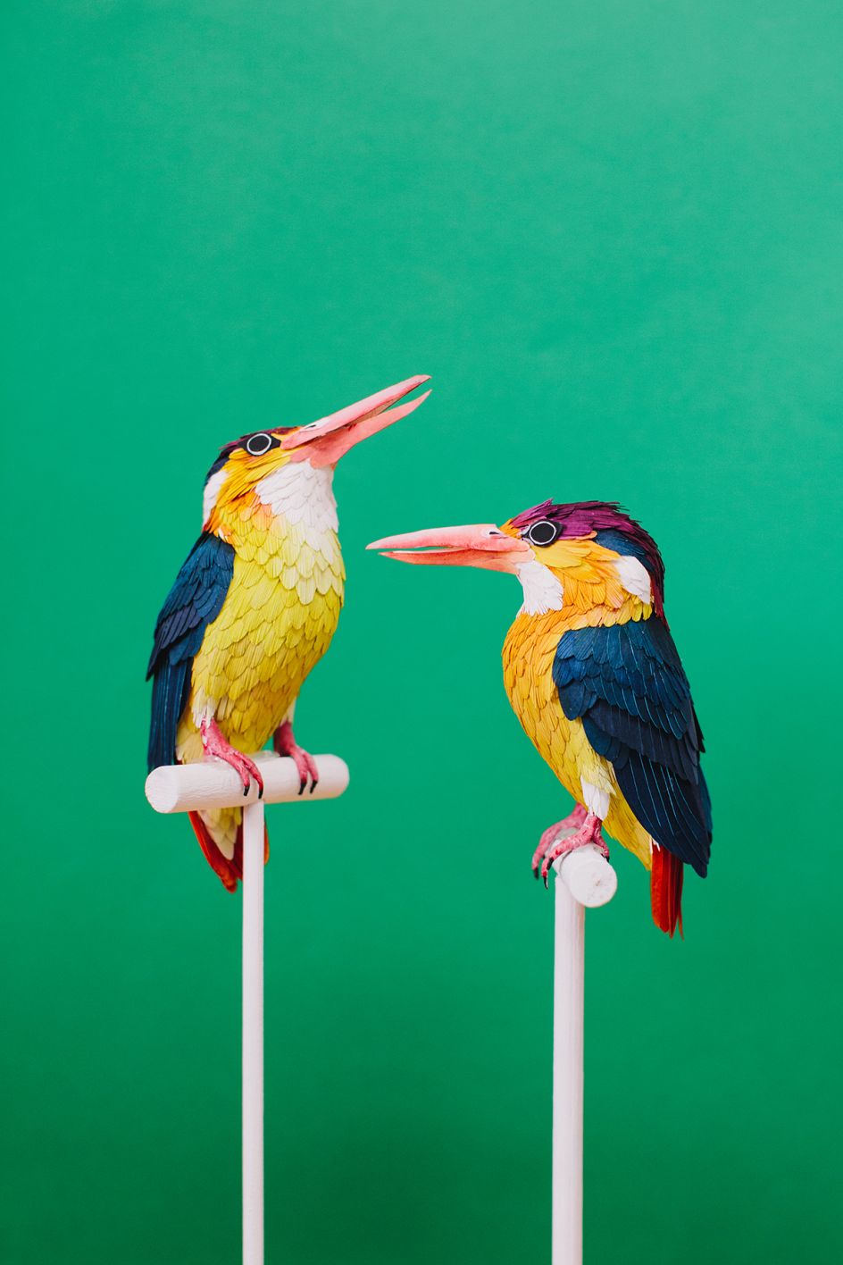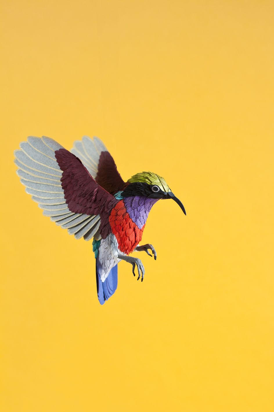 From tropical birds of paradise and parrots to humble British varieties; from incredible hummingbirds to colourful African winged creatures, Diana Beltran Herrera's paper sculptures pay homage to birds around the world.