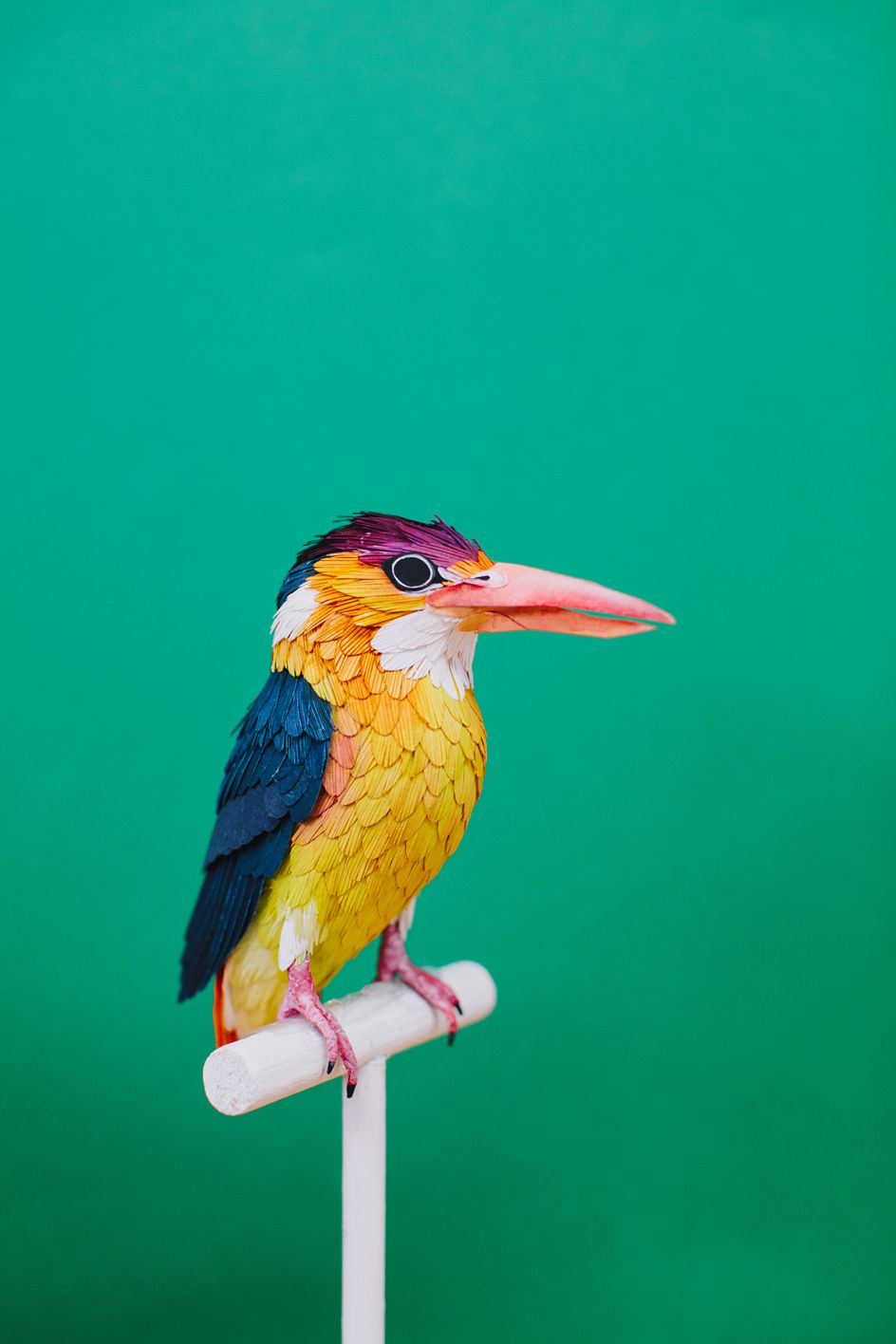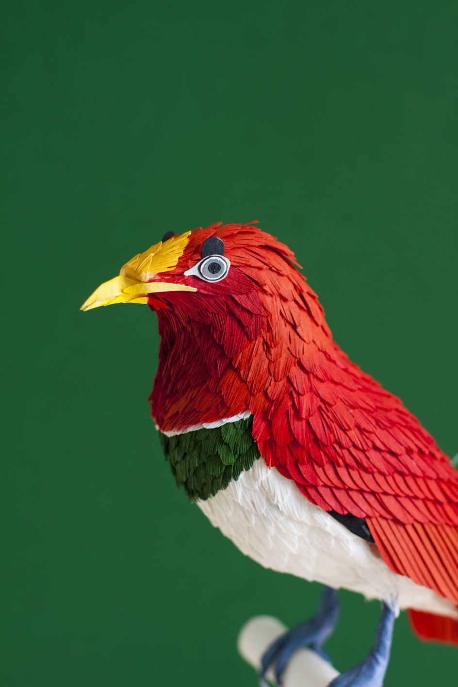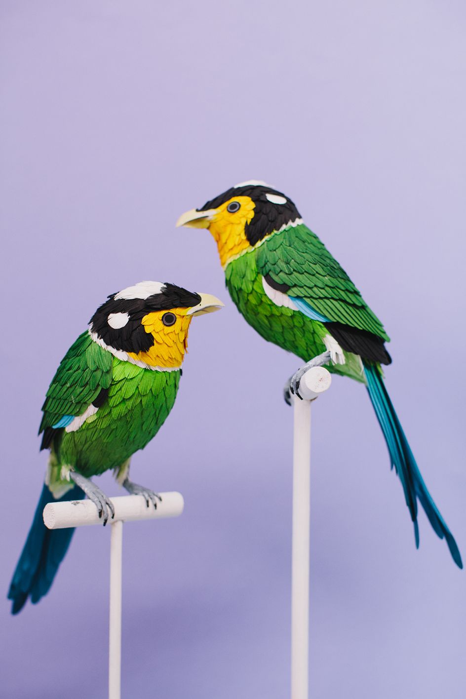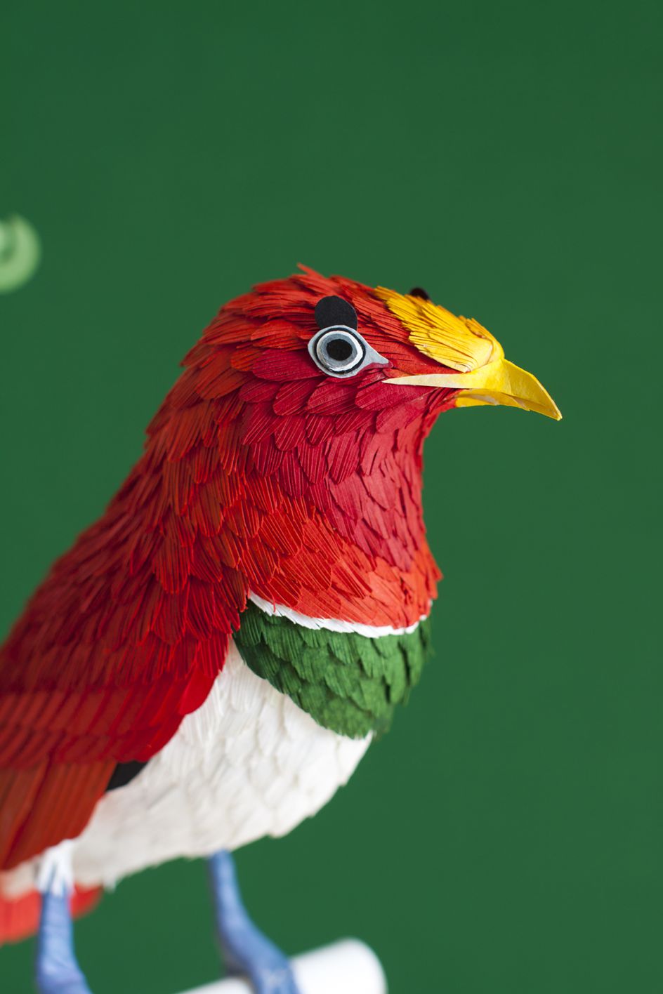 From tropical birds of paradise and parrots to humble British varieties; from incredible hummingbirds to colourful African winged creatures, Diana Beltran Herrera's paper sculptures pay homage to birds around the world.