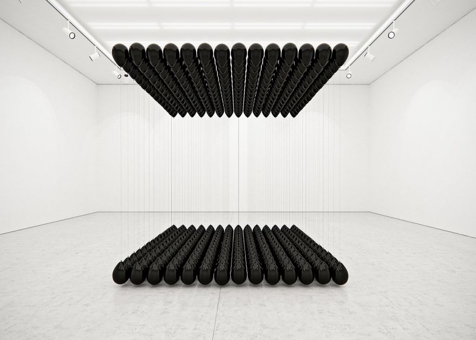 Knowing that his artworks won't last forever, the playful installations began with just two black balloons filled with two different gasses: helium and sulfur hexafluoride. When he realised the endless possibilities if he introduced more balloons to the equation, he became overwhelmed and excited to experiment further.