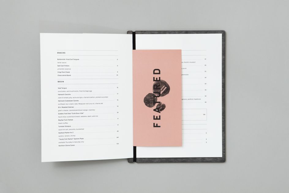 Inspired as much by +tongtong’s marriage of organic elements and contemporary materiality as by Chef Lee’s philosophy of cooking, the identity reflects the essence of what good food is about and the elements that come together to create a memorable dish. Imagery has a raw sensuality and sense of craft that mirrors Chef’s deep love of food, while texts give voice to his sense of playfulness and the restaurant’s spirit of conviviality.