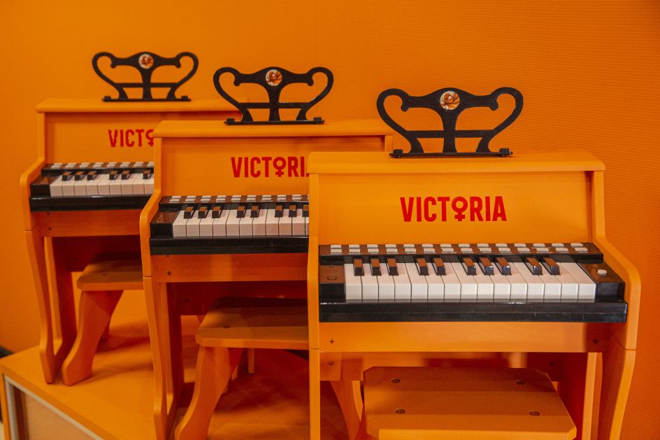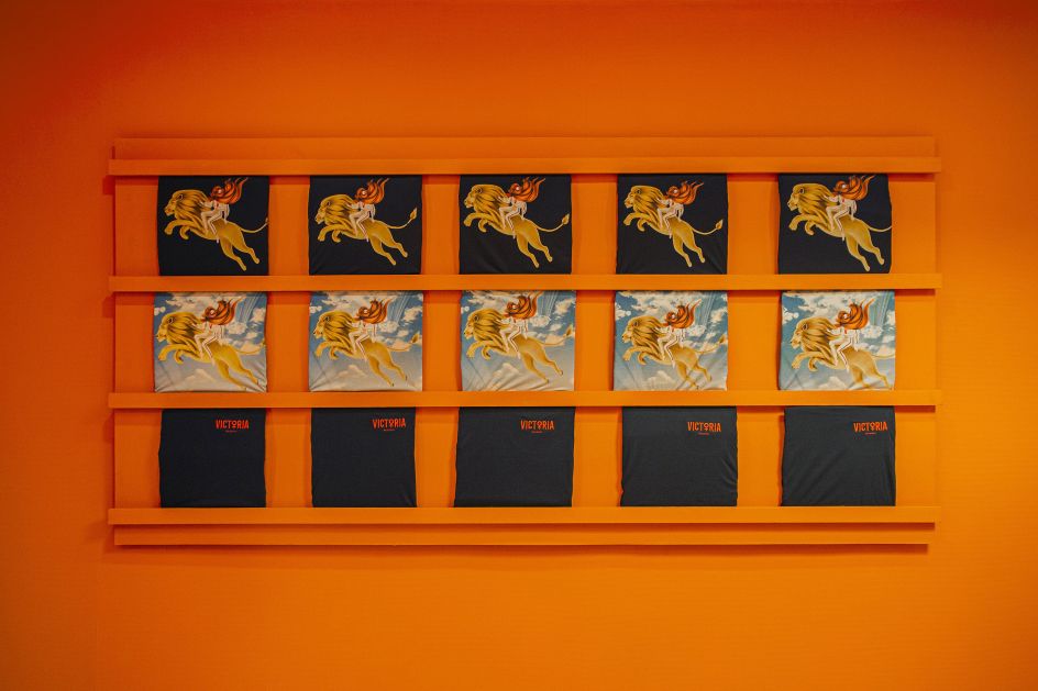 In order to do this, Leyda looked to Victoria herself. Instantly recognisable thanks to her shock of ginger locks, Victoria's hair colour appears to have become a central pillar of Victoria Records' new identity. Everywhere you look, the same colour can be found on the studio's clothing and branding, acting as a striking shorthand for both the label and its owner.