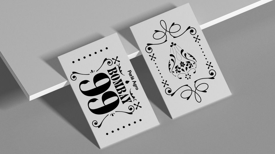 "The Bombay 99 name is an ode to the brand roots, referring to the pin code of their historic headquarters in Mumba," Jessica tells Creative Boom. "We brought the branding to life through custom flourishes and ornaments inspired by traditional Indian flourishes and designs. We designed them with a modern twist. The creation is inspired by the shape of a single droplet from a drink."