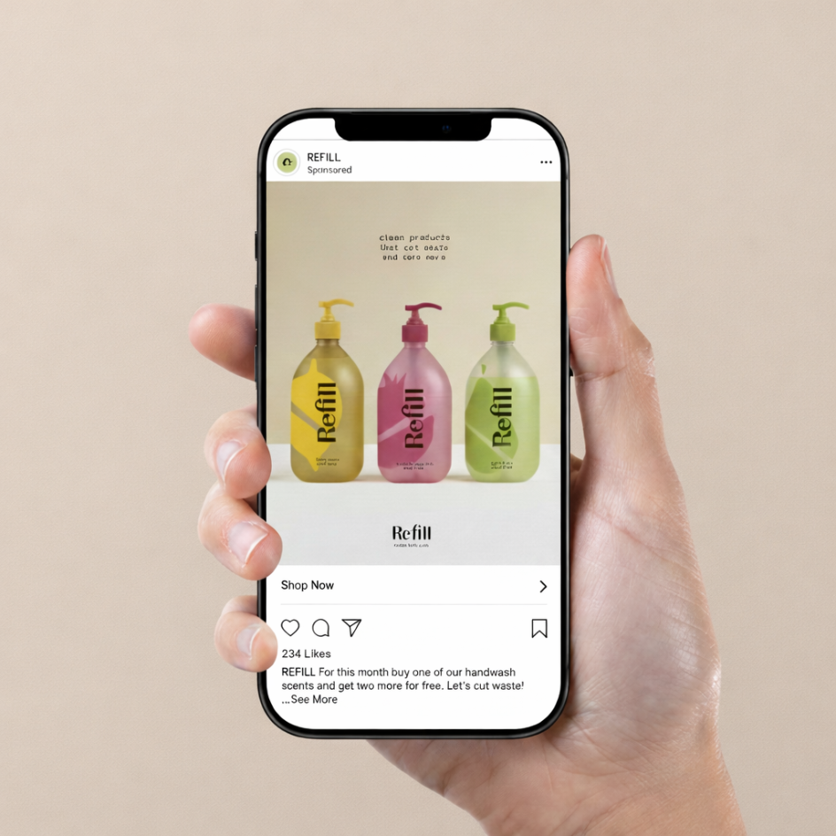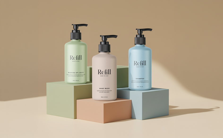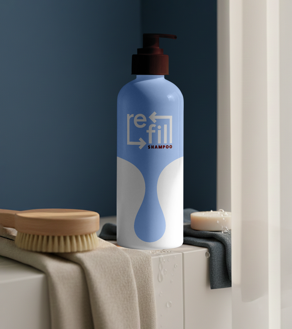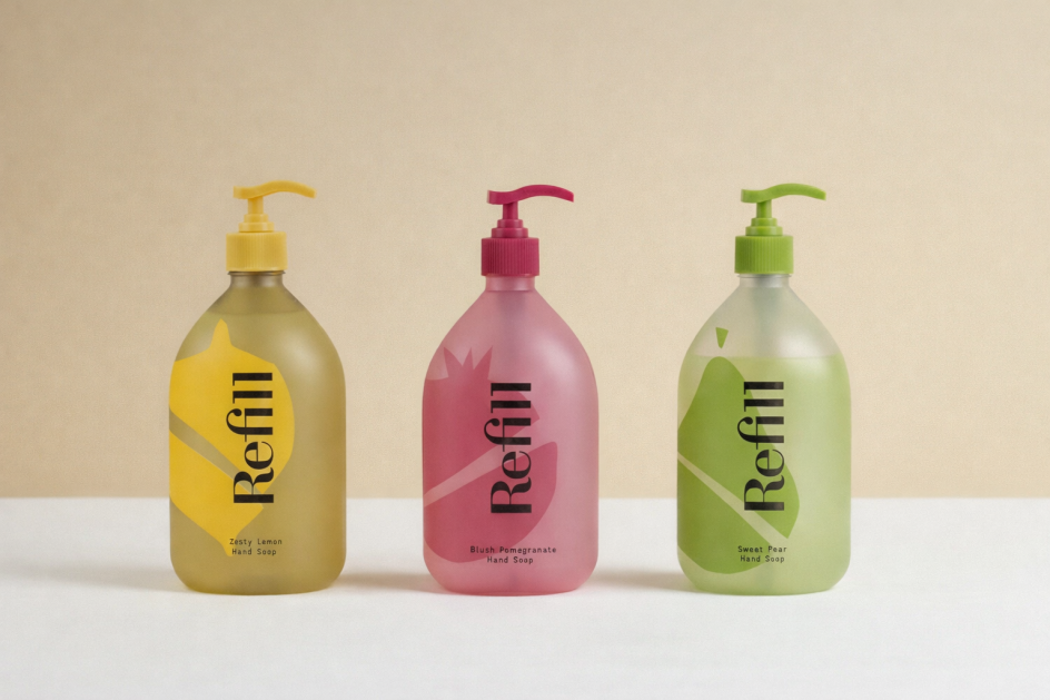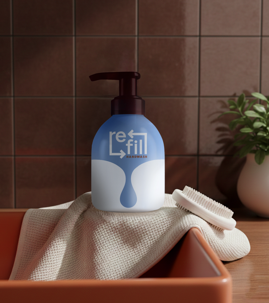 The brief was REFILL, a modern take on everyday essentials like hand wash, shampoo and surface cleaner. Products designed to be refilled, reused, and left out on purpose. No greenwashing. No obvious eco clichés. Just smart design that people would genuinely want to live with.
