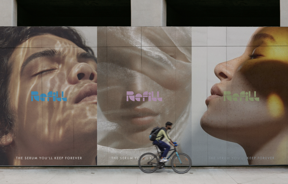 In motion, vibrant shards converge to build the REFILL logo, visualising transformation and positive action. Sustainability here isn't passive; it's dynamic and optimistic.