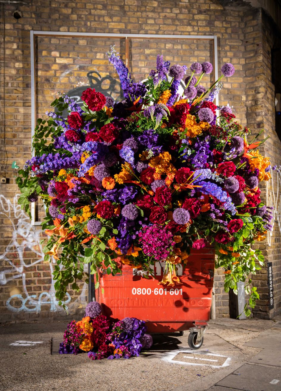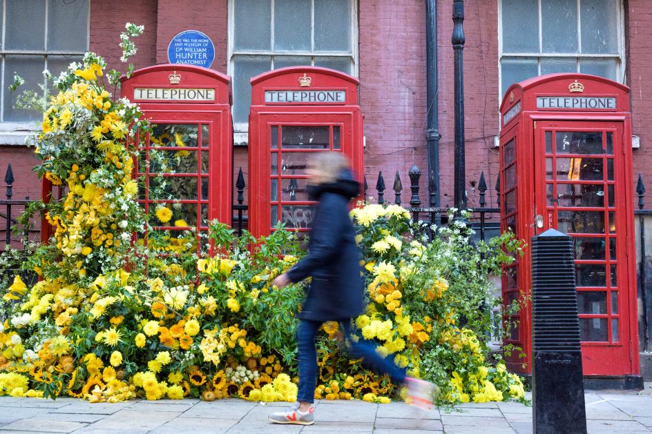 The collaboration included three installations made up of 12,000 fresh flowers (from Covent Garden Flower Market) at Eros in Piccadilly Circus, two classic red phone boxes and an unassuming bin in Dray Walk, near Brick Lane.